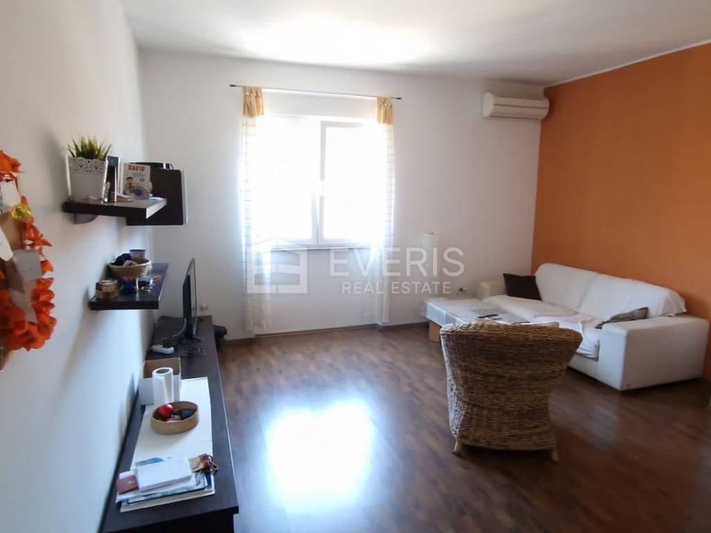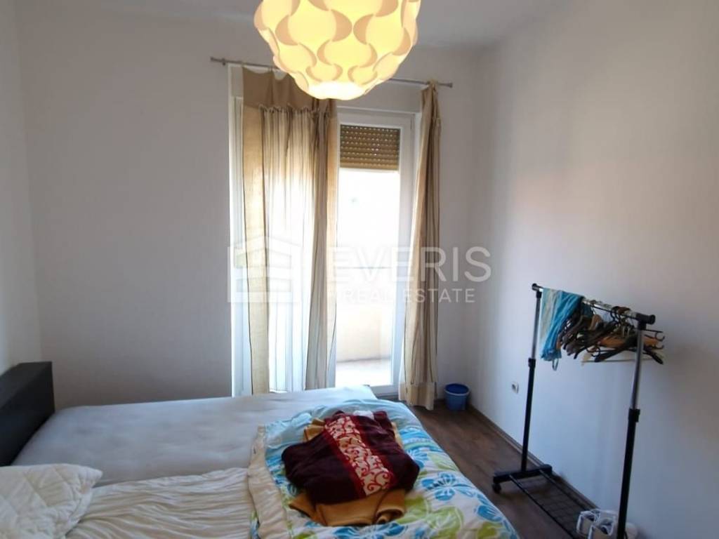 Stan je opremljen (perilica za suđe i robu, frižider i TV), protuprovalna vrata, PVC stolarija i rolete.