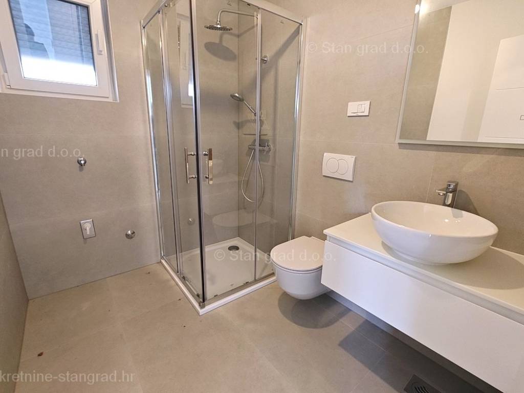 Kod agencije Stan Grad Immobilien je u prodaji izniman apartman građen po modernom projektu na atraktivnom sjevernojadranskom području otoka Krka. Dostupna nekretnina je smještena na vrlo privlačnoj lokaciji u neposrednoj blizini središta mjesta Malinske. Radi se u naravi o prostranom apartmanu koji obuhvaća dvije pripadajuće stambene jedinice s vlastitim ulazom uklopljen u novi objekt sagrađen prema modernom projektu. Unutar solidno izgrađenog objekta, apartman je smješten na 2. etaži i dodatnog pripadajućeg apartmana u prizemnoj etaži. Površina ovih apartmana iznosi ukupno 115 m2. Unutar navedene površine su u prizemnom stanu obuhvaćeni hodnik, dnevni boravak i kuhinja s blagovaonom, 1 spavaća soba, 1 kupaonica, ostave i terase, a u stanu na katu su ulazni hodnik, dnevni boravak i kuhinja s blagovaonom, 2 spavaće sobe, kupaonice, zasebnog wc-a i natkrivene lođe. Nenamješteno, PVC stolarija s električnim roletama i komarnicima, podno grijanje, klima uređaj. Svakako je za napomenuti da vlasništvo opisanih apartmana uz sebe veže i dobro organiziranu okućnicu od 35 m2. Vlasništvu ovih apartmana pripadaju dva parkirna mjesta. Povrh ranije spomenutih prostornih svojstava, apartman nudi lijep osjećaj boravka, kojem osobito pogoduje dobar pogled na more i karakteristični primorski okoliš. Ovaj apartman je u sustavu PDV-a te je izuzet od plaćanja poreza na promet nekretnina, što u stvarnosti kupca ove nekretnine oslobađa predmetne porezne obveze. Prodavatelj nekretnine jamči urednu građevinsku i vlasničku dokumentaciju te brz prijenos nekretnine na ime kupca. Posjetite nas na otoku Krku i pobrinut ćemo se da osjetite zadovoljstvo svih naših klijenata. Odlučite li se za suradnju s nama, posrednički ured Stan Grad Immobilien će vam sa zadovoljstvom pomoći prilikom prijenosa vlasništva nekretnine i pripadajućih komunalnih priključaka.