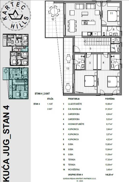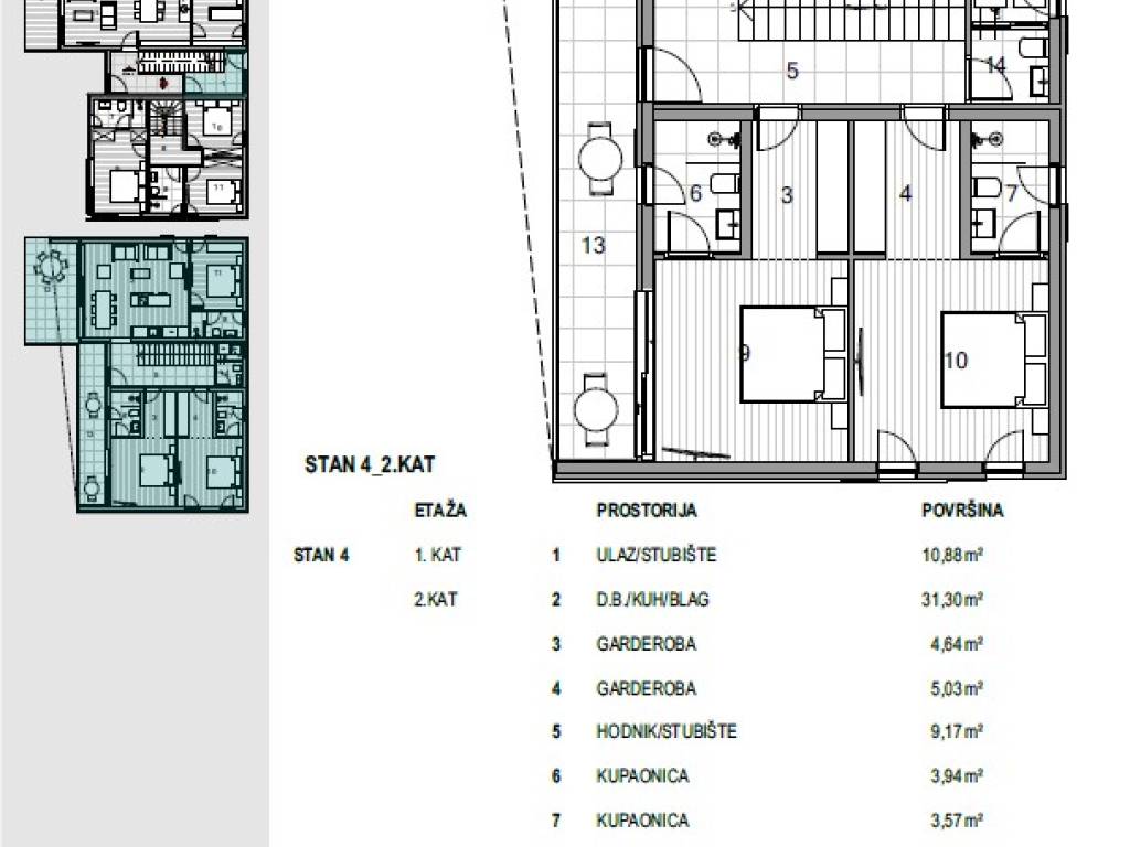 Na prodaju kod naše agencije je stavljen vrlo vrijedan i skupocjeno građen apartman na atraktivnom jadranskom turističkom području otok Krk. Ovaj apartman je smješten na odličnoj i rijetko dostupnoj lokaciji u samoj blizini mora te na pješačkoj udaljenosti od središta grada Krka i ključnih životnih sadržaja. Ovo je vrlo udobni, prostran jednoetažni apartman vrlo dobrog rasporeda. U okviru moderno projektirane građevine, apartman se pruža preko 2. etaže. Apartman obuhvaća ukupnu površinu od približno 130 m2. Tom površinom obuhvaćeni su dnevni boravak i kuhinja s izlazom na terasu, wc, 3 spavaće sobe, od kojih dvije imaju garderobu te vlastitu kupaonicu, a treća ima samo kupaonicu. Unutarnji prostor nekretnine je prazan i kompletno slobodan od komada namještaja. Može se istaknuti i da vlasništvo apartmana omogućava neometano korištenje zajedničkog dijela okućnice nekretnine. U vlasništvu ovog apartmana je uređen parkirni prostor za parkiranje dva automobila. Uz ranije opisane značajke ove nekretnine, istaknuli bismo i odličnu orijentaciju dopadljiv pogled apartmana prema bližoj urbaniziranoj okolici, moru i prirodnom krajobrazu. Ovaj je apartman vlasništvo fizičke osobe pa je kupac prilikom prijepisa njegovog vlasništva na svoje ime u obvezi plaćanja poreza na promet u visini 3%. Prodavatelj apartmana garantira kompletne vlasničke dokumente i uredan prijenos nekretnine. Kontaktirajte nas osobno ili telefonski, nastojat ćemo odgovoriti na sva vaša pitanja. Agencija Stan Grad Immobilien će svim svojim klijentima pružiti svu potrebnu pomoć kod uknjižbe vlasništva i preuzimanja same nekretnine. Planirani završetak radova je 2024. godine.