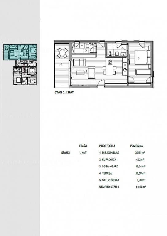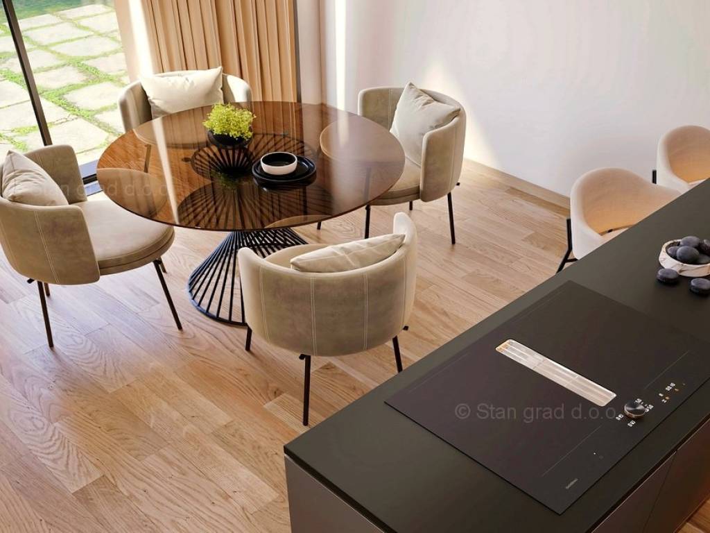 Na prodaju kod naše agencije je stavljen vrlo vrijedan i skupocjeno građen apartman na atraktivnom jadranskom turističkom području otok Krk. Ovaj apartman je smješten na odličnoj i rijetko dostupnoj lokaciji u samoj blizini mora te na pješačkoj udaljenosti od središta grada Krka i ključnih životnih sadržaja. Ovo je vrlo udobni, srednje veliki jednoetažni apartman vrlo dobrog rasporeda. U okviru moderno projektirane građevine, apartman se pruža preko prizemne etaže. Apartman obuhvaća ukupnu površinu od približno 61 m2. Tom površinom obuhvaćeni su dnevni boravak i kuhinja, 2 spavaće sobe, 1 kupaonica, 1 wc i terasa. Unutarnji prostor nekretnine je prazan i kompletno slobodan od komada namještaja. Bitno je istaknuti i da će vlasniku pripadati dio okućnice nekretnine. U vlasništvu ovog apartmana je uređen parkirni prostor za parkiranje dva automobila. Uz ranije opisane značajke ove nekretnine, istaknuli bismo i odličnu orijentaciju dopadljiv pogled apartmana prema bližoj urbaniziranoj okolici, moru i prirodnom krajobrazu. Ovaj je apartman vlasništvo fizičke osobe pa je kupac prilikom prijepisa njegovog vlasništva na svoje ime u obvezi plaćanja poreza na promet u visini 3%. Prodavatelj apartmana garantira kompletne vlasničke dokumente i uredan prijenos nekretnine. Kontaktirajte nas osobno ili telefonski, nastojat ćemo odgovoriti na sva vaša pitanja. Agencija Stan Grad Immobilien će svim svojim klijentima pružiti svu potrebnu pomoć kod uknjižbe vlasništva i preuzimanja same nekretnine. Planirani završetak radova je 2024. godine.
