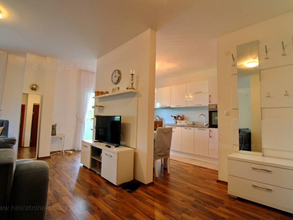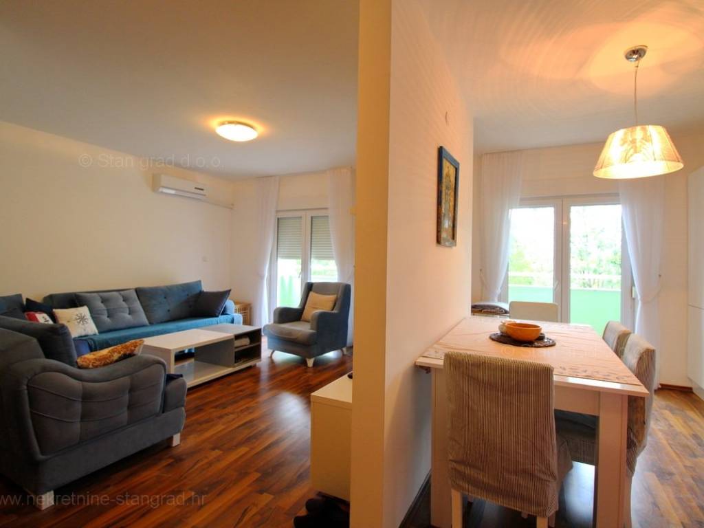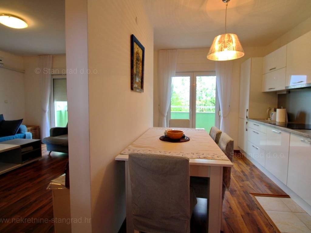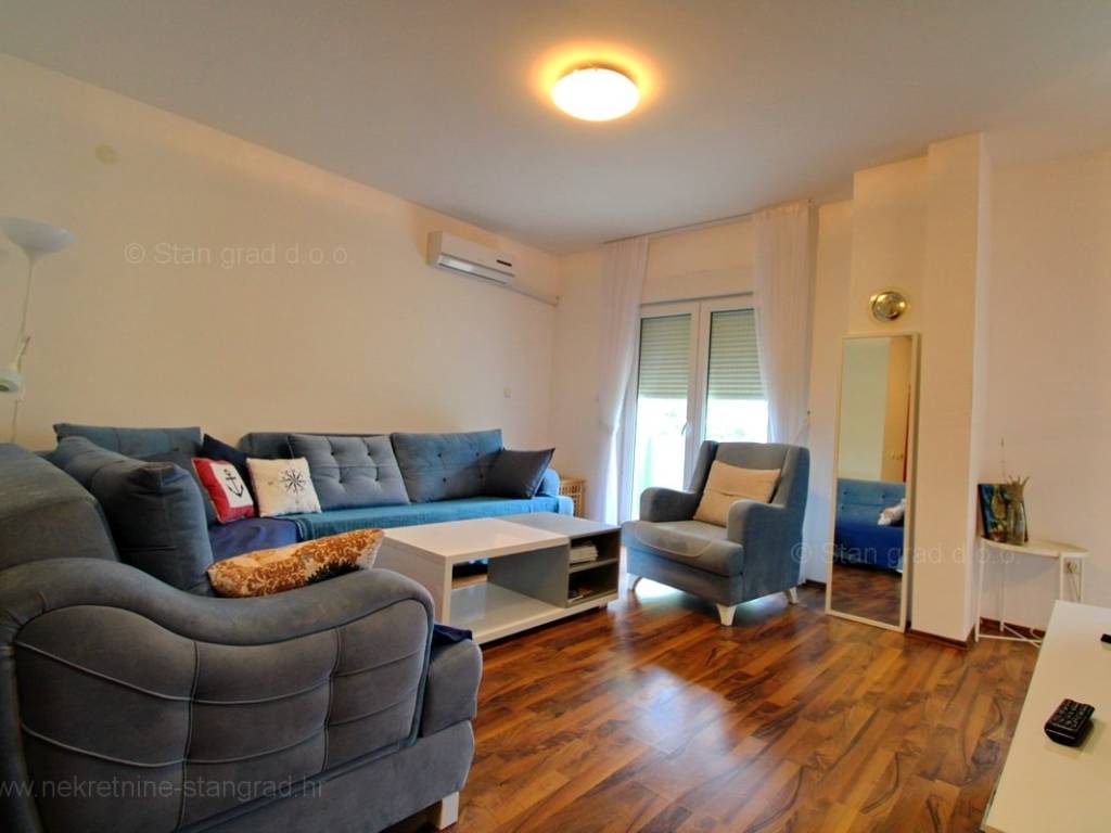 Unutar široke ponude nekretnina kod agencije Stan Grad Immobilien se prodaje vrlo dobar i uređen turistički apartman u traženoj mediteranskoj jadranskoj destinaciji otok Krk. Ova nekretnina se nalazi na izvanrednoj lokaciji, blizu mora i plaže te nedaleko centra u Uvali Soline. Ovo je iznimno komforni jednoetažni apartman koji stanarima nudi lijep životni prostor. U lijepoj zgradi dobre kvalitete, apartman je smješten na 1. etaži. Predmetni apartman se proteže na ukupnoj površini od cca 51 m2. Tom površinom obuhvaćeni su dnevni boravak i kuhinja, 1 spavaća soba, 1 kupaonica i terasa. Unutarnji prostori nekretnine su osobito dobro održavani te u potpunosti opremljeni potrebnim tehničkim uređajima i vrlo kvalitetnim namještajem. Može se istaknuti i da vlasništvo apartmana omogućava neometano korištenje zajedničkog dijela okućnice nekretnine. Vlasnik apartmana na raspolaganju će imati jedno parkirno mjesto. Povrh ranije opisanih svojstava, nekretnina je vrlo dobro orijentirana te pruža primamljiv pogled iz apartmana na more i prirodni krajolik. Predmetni je apartman u vlasništvu fizičke obveze i kod prijenosa vlasništva podliježe obračunu poreza na promet nekretnina u visini 3%. Vlasnik ovog apartmana jamči brz i lak prijenos vlasništva na kupca nekretnine. Očekujemo vas na Kvarneru s uvjerenjem u vaše zadovoljstvo našom uslugom. Agencija Stan Grad Immobilien će svim svojim klijentima pružiti svu potrebnu pomoć kod uknjižbe vlasništva i preuzimanja same nekretnine.