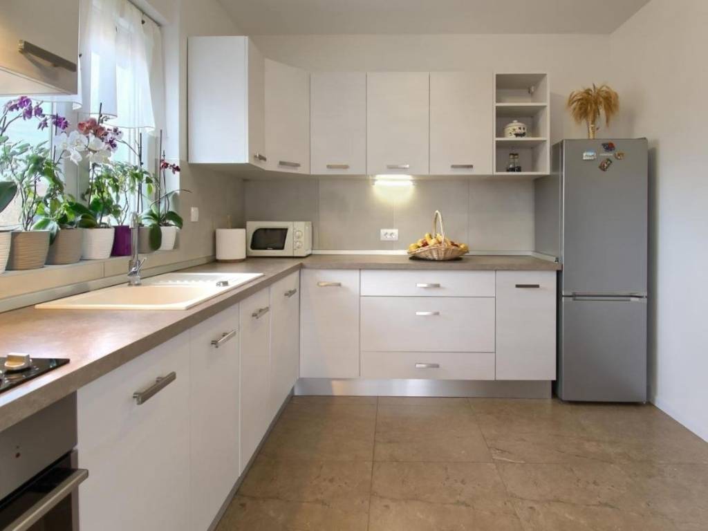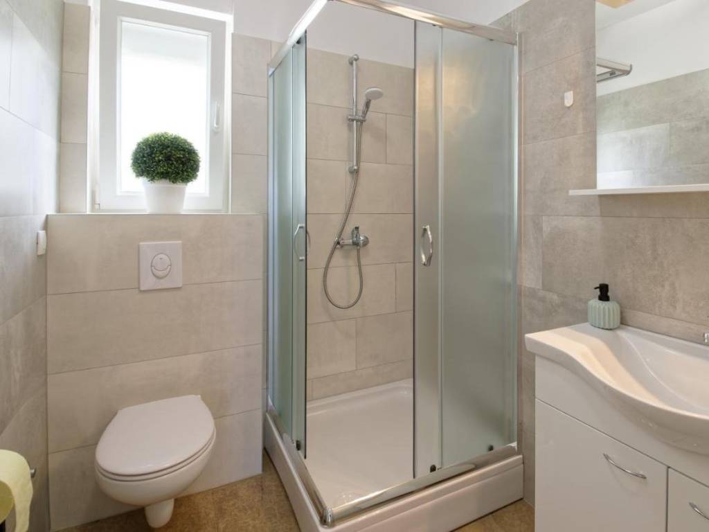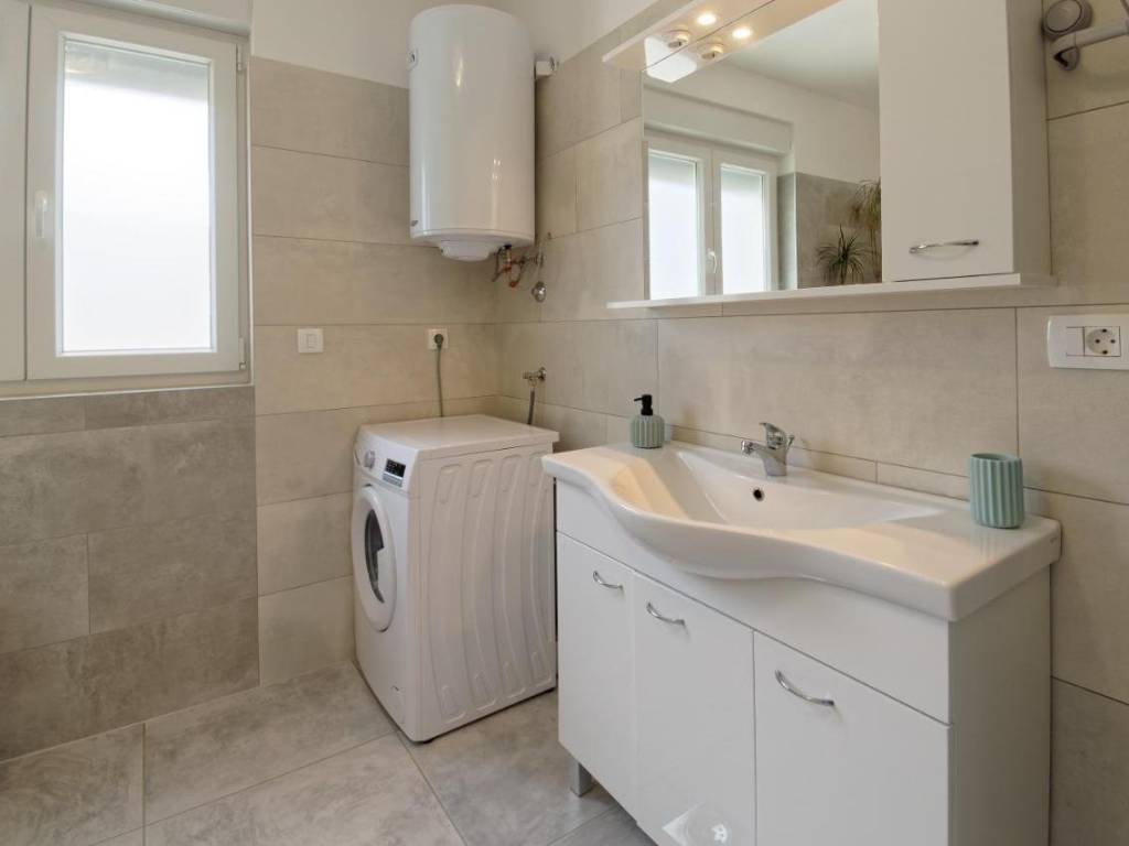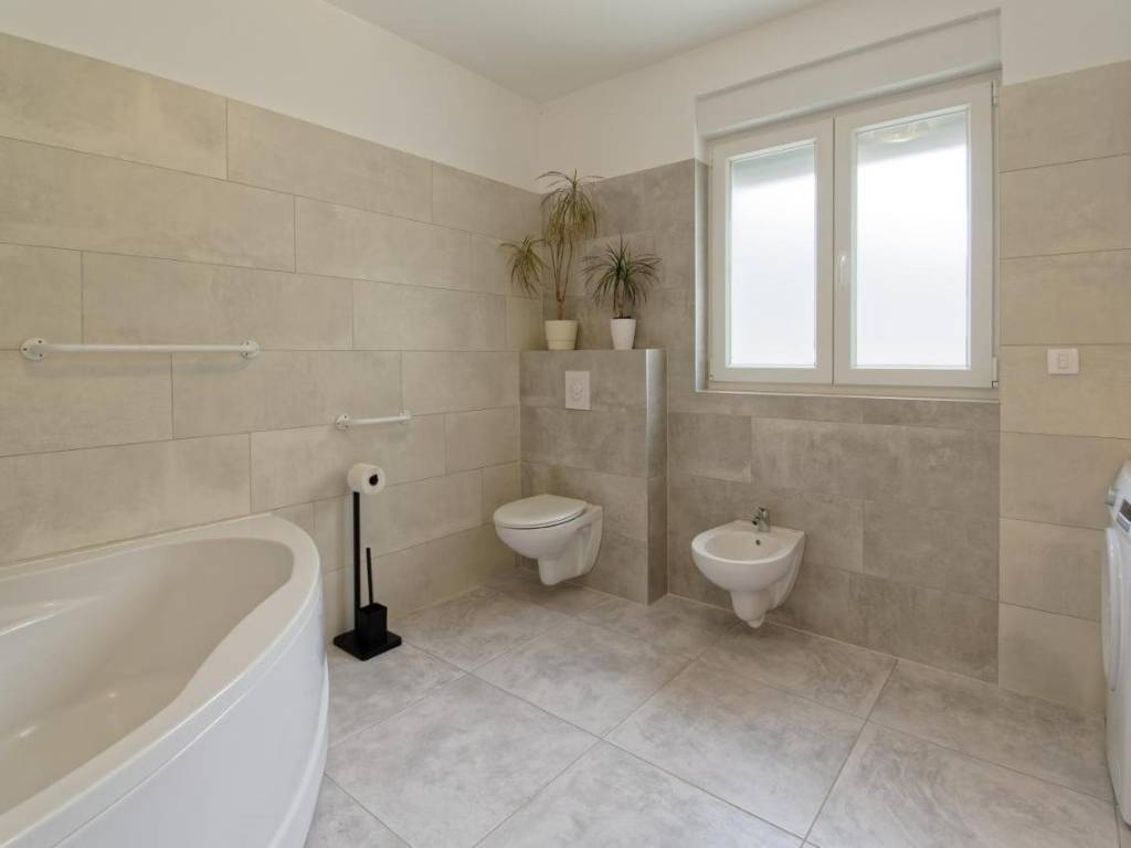 Na okućnici se nalaze 3 parking mjesta, a na uređenoj zelenoj površini posađene su masline i druge mediteranske biljke.