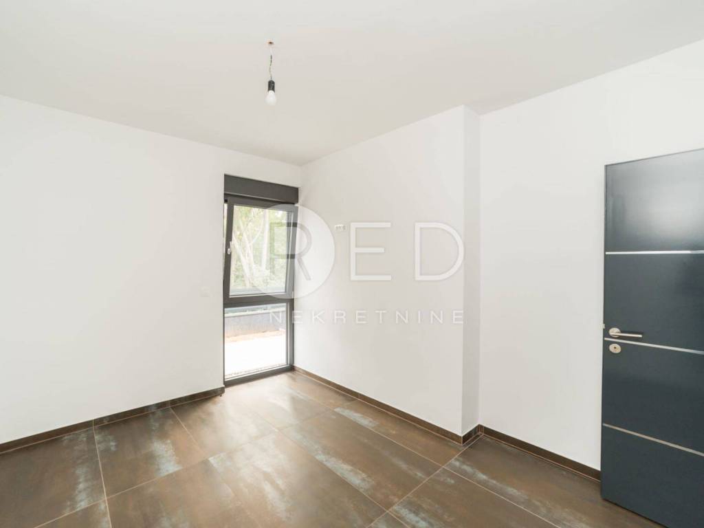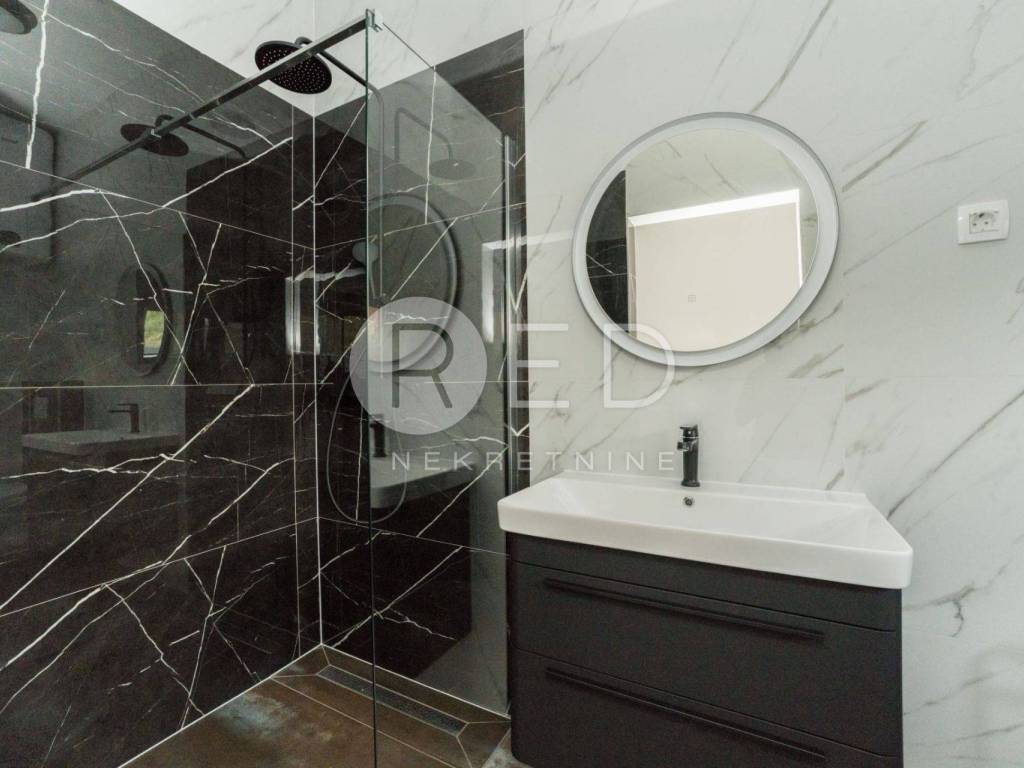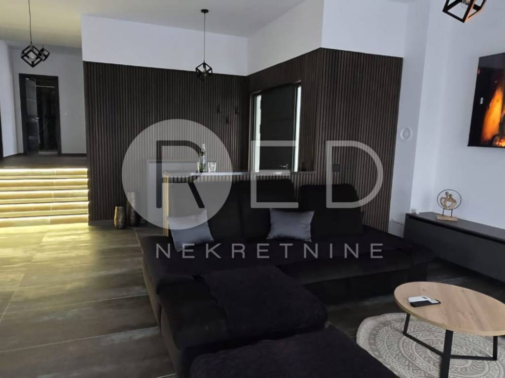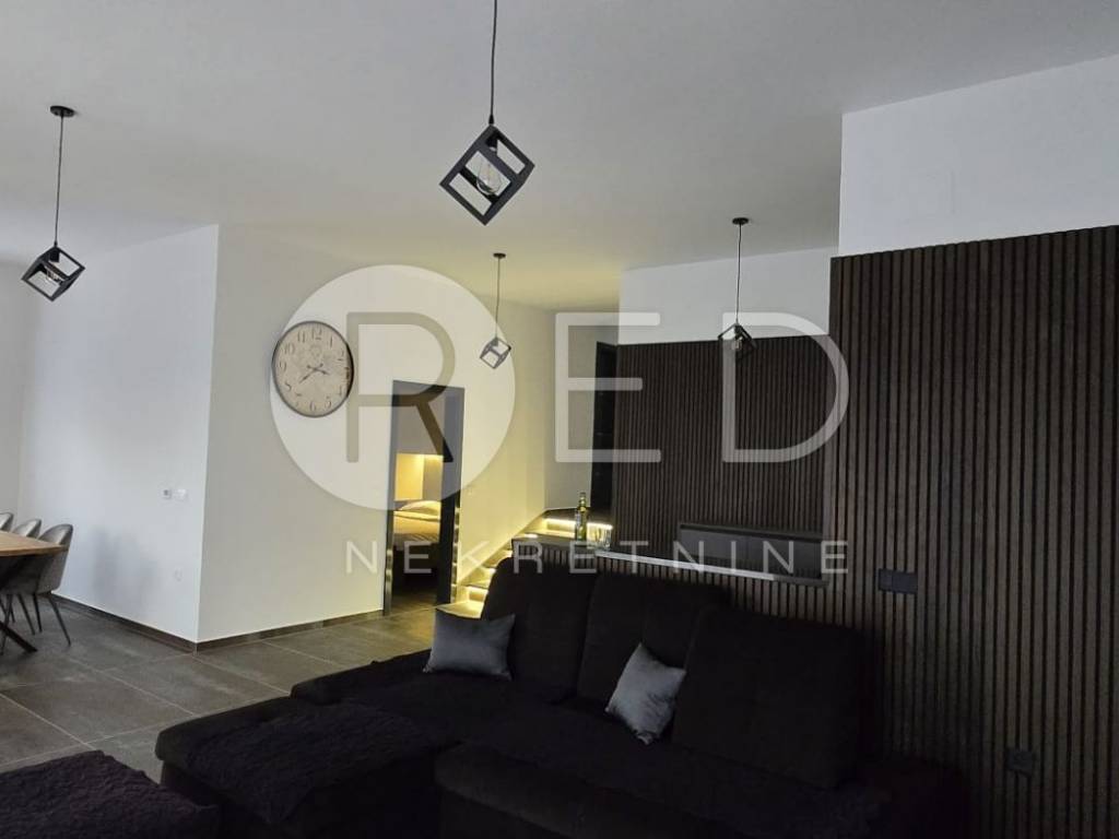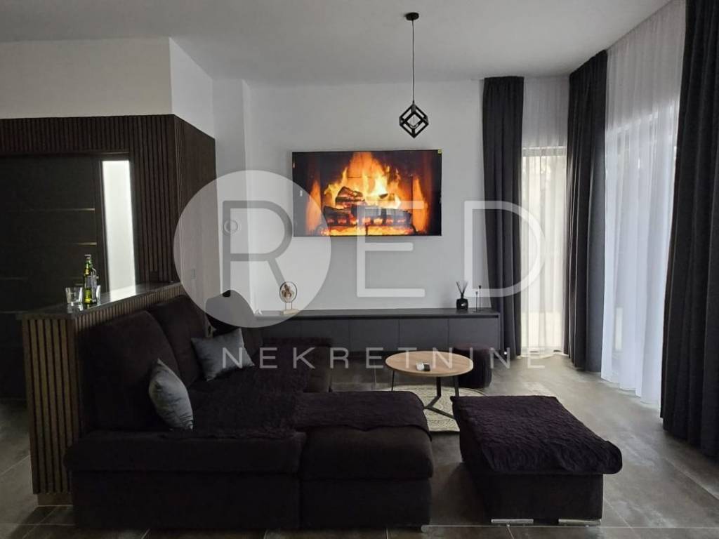 Terasa s bazenom idealna je za opuštanje, dok privatno dvorište s parkirnim mjestom pruža dodatnu udobnost. Kuća je u potpunosti klimatizirana i opremljena podnim grijanjem. Kvalitetni materijali uključuju keramičke pločice i vrhunsku PVC stolariju Rehau Synego.