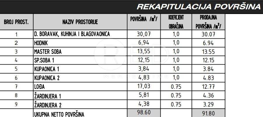 - Dnevnog boravka s kuhinjom i blagovaonicom - 4 Spavaće sobe - 2 Kupaonice - Ulazni hol - Hodnika - loggie - vešeraj - toalet - krovna terasa