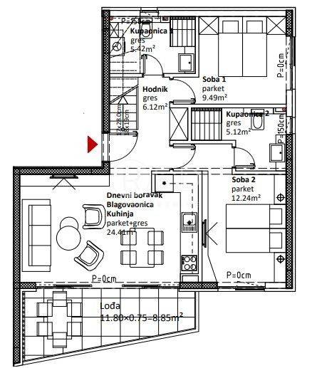 Svakom stanu u zgradi pripada jedno vanjsko parkirno mjesto.