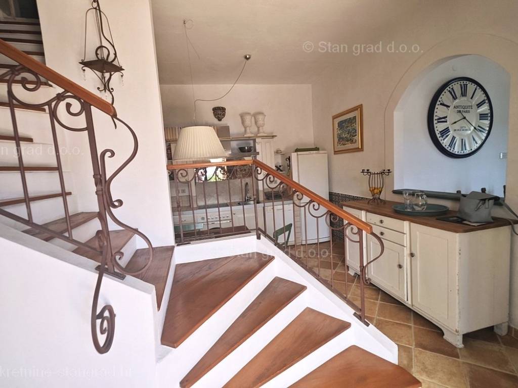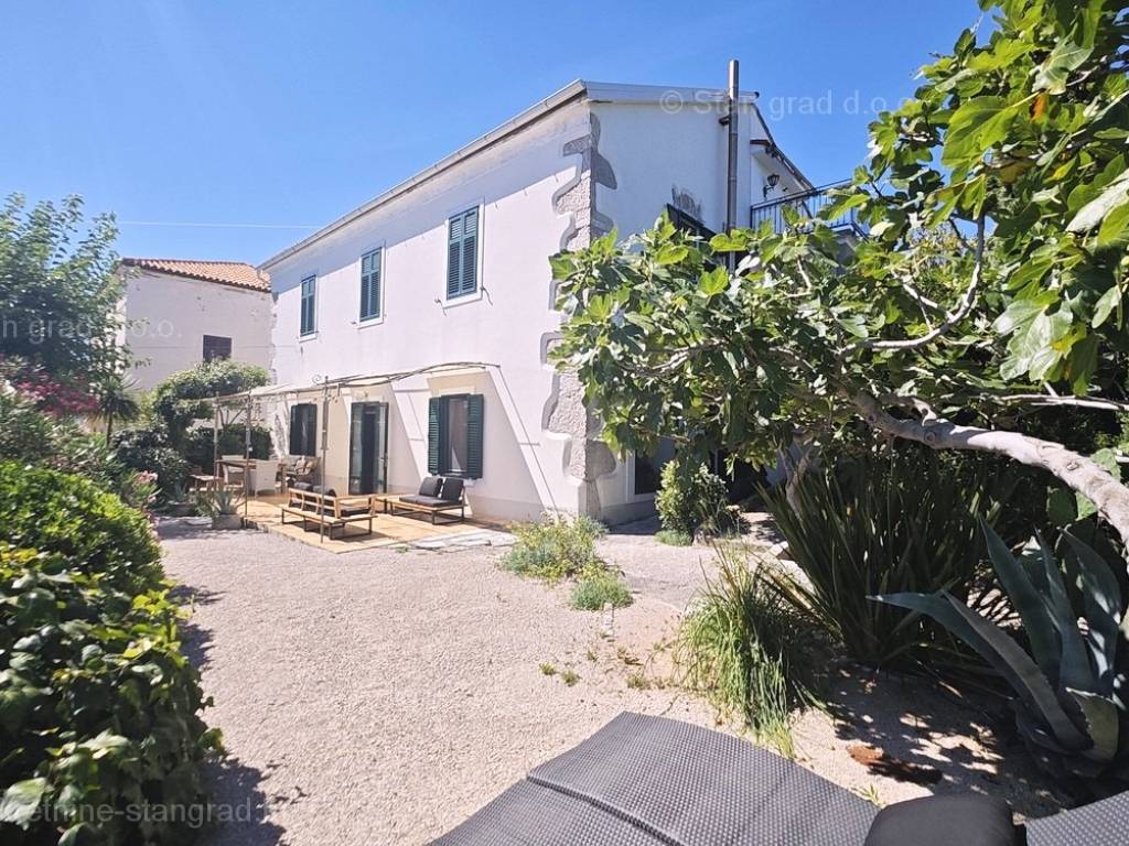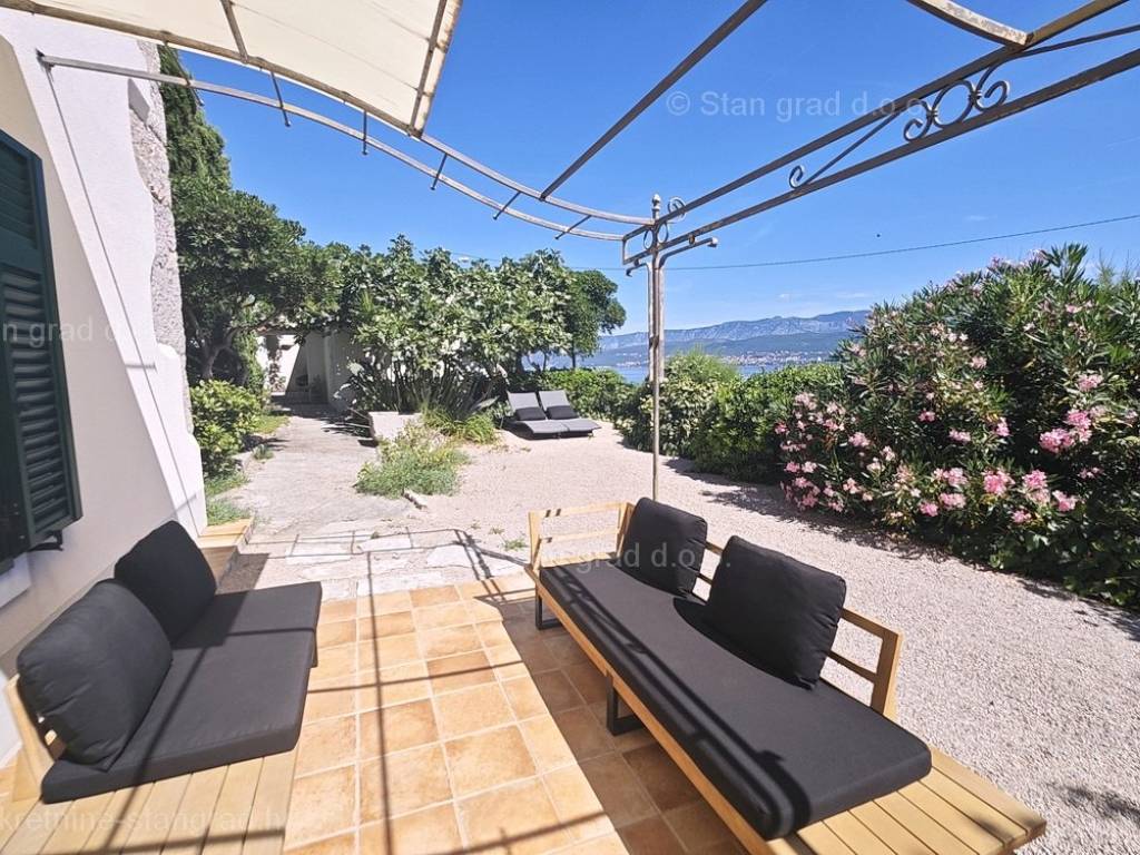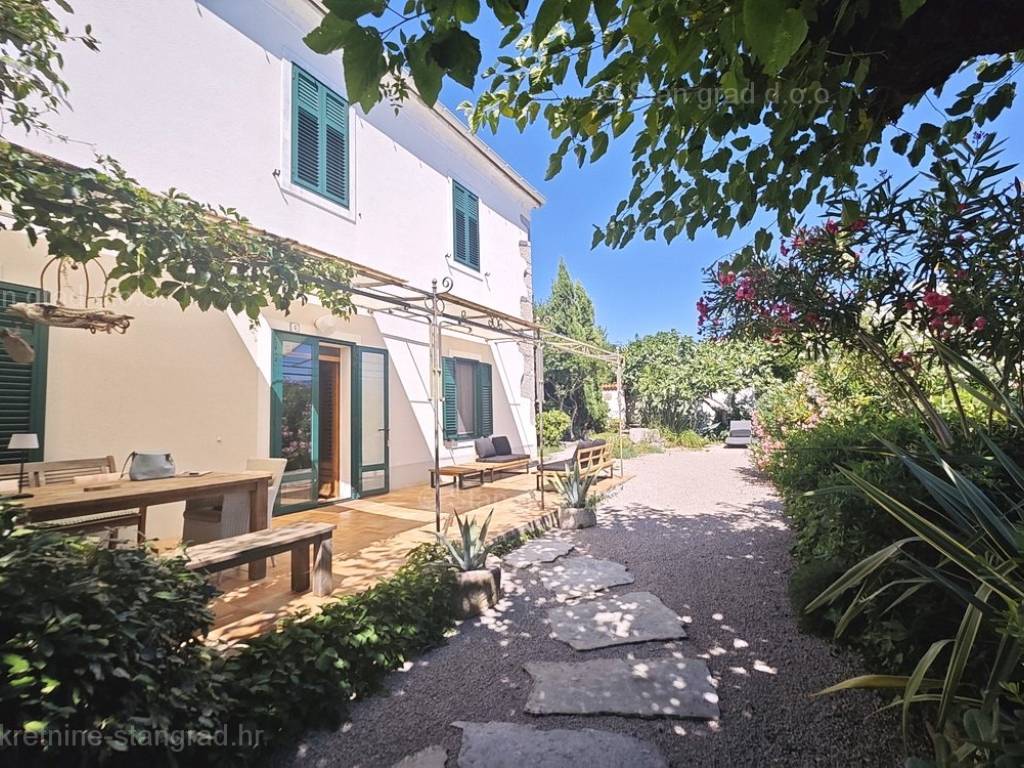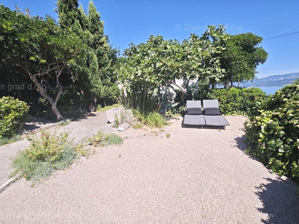 U sklopu posjeda ove kuće dolazi pažljivo uređena i održavana okućnica oplemenjena mediteranskim biljem, koja uključuje prostor za grill i obiteljsko opuštanje. U okviru posjeda predmetne kuće moguće je parkiranje jednog vozila u garaži i jednog na otvorenom prostoru okućnice. Osim toga, bitno je istaknuti da kuća ima fantastičan panoramski pogled na more.