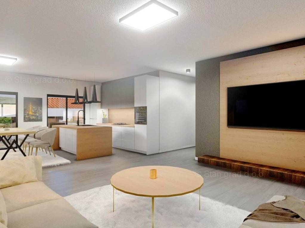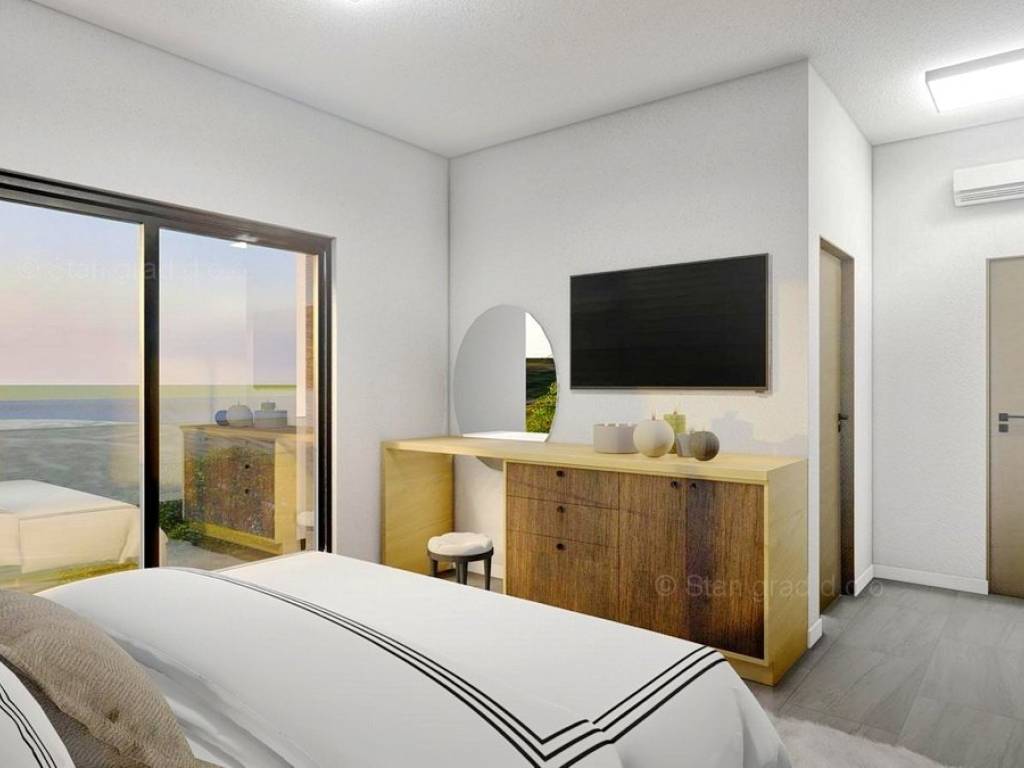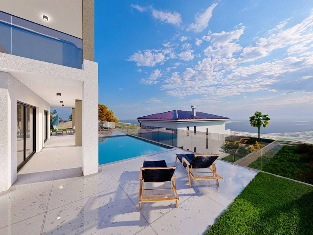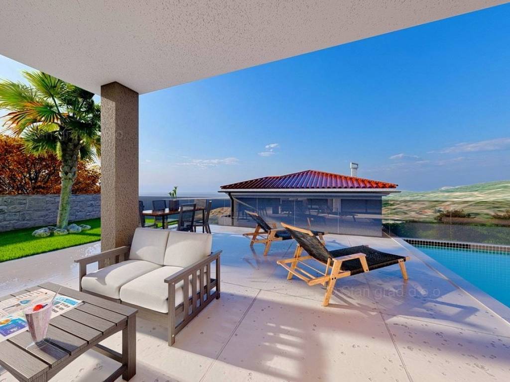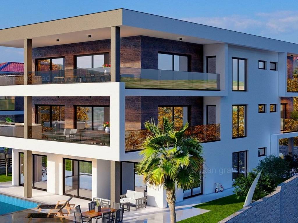 Na prodaju kod naše agencije je stavljen vrlo vrijedan i skupocjeno građen apartman na atraktivnom jadranskom turističkom području otok Krk. Istaknuti apartman je smješten na mirnoj i privlačnoj lokaciji nedaleko mora i centra mjesta Vrbnik, odlično prometno povezanoj s ostatkom otoka. U naravi je to vrlo prostrani i komforni jednoetažni apartman. Unutar luksuzno izgrađenog objekta, apartman se nalazi na prizemnoj etaži. Apartman obuhvaća ukupnu površinu od približno 137 m2. Ovu površinu zauzimaju dnevni boravak i kuhinja, 2 spavaće sobe, 2 kupaonice i terasa. Unutarnji prostor nekretnine je prazan i kompletno slobodan od komada namještaja. Za istaknuti je da dodanu vrijednost apartmanu daje pripadajuća okućnica oplemenjena bazenom i sunčalištem. Unutarnjim liftom dolazi se do podruma zgrade gdje se nalazi ostava. Na pripadajućem dijelu okućnice opisane nekretnine može se komforno parkirati dva automobila. Uz prethodno navedene značajke, ovaj je apartman iznimno lijepo orijentiran te ima očaravajući panoramski pogled na more. Ovaj je apartman vlasništvo fizičke osobe i na prijenos vlasništva istog se obračunava porez na promet nekretnina u visini 3%. Vlasnik apartmana jamči brz i lak prijenos vlasništva nekretnine na kupca. Kontaktirajte nas osobno ili telefonski, nastojat ćemo odgovoriti na sva vaša pitanja. Posrednik Stan Grad Immobilien će vam pomoći u prijenosu vlasništva nekretnine i računa za komunalne usluge.