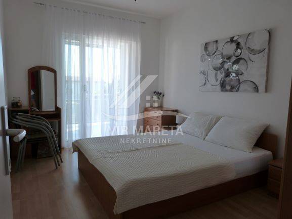 Dvosobni apartman sastoji se od kuhinje sa dnevnim boravkom, dvije sobe, kupaone sa tušem i wc-om, hodnikom i natkrivenom terasom.