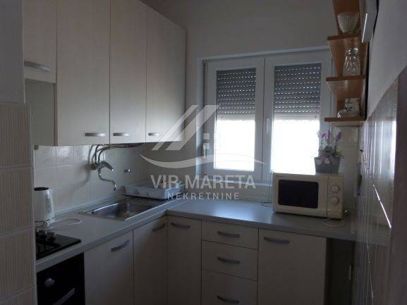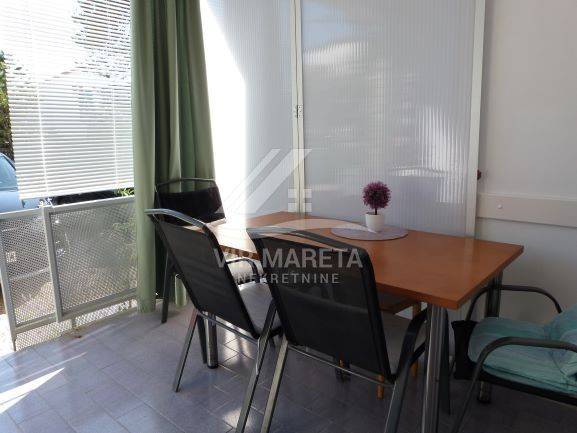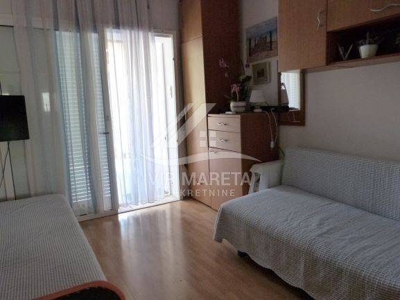 Studio apartman se sastoji od sobe sa kuhinjom, kupaone sa tušem i wc-om i natkrivene terase.