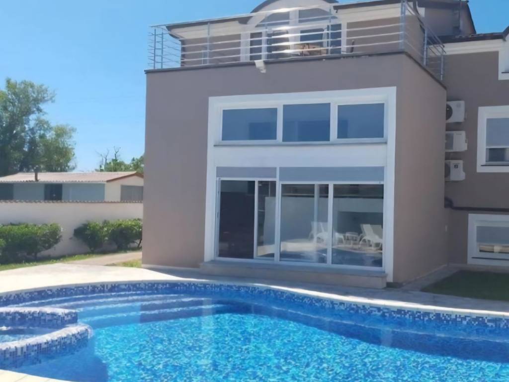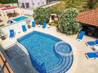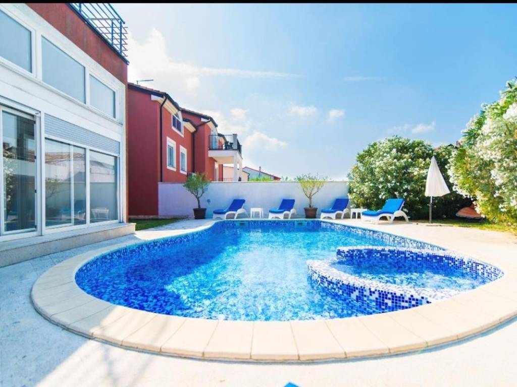 Na prodaju je ova lijepa dvojna kuća za odmor u Puli s vlastitim bazenom, teretanom i garažom. Kuća se prostire kroz 3 etaže, sastoji se od 5 spavaćih soba, 2 dnevna boravka, kuhinje, 2 kupaonica, 1 wc, garaže za 2 automobila te parking ispred garaže. U vrtu se osim bazena nalazi i natkriveno mjesto za roštiljanje. Kuća ima Centralni sustav grijanja s posvećenim spremnikom za plin te lima uređaje na svakoj etaži. Kuća ima odlične rezultate u prihodu od najma u sezoni. Više na upit.