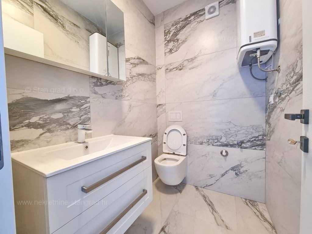 Iz odlične ponude nekretnina u agenciji Stan Grad Immobilien, izdvaja se vrlo lijep apartman u kvalitetnom i poželjnom obalnom jadranskom odredištu otok Krk. Ova nekretnina se nalazi na izvanrednoj lokaciji u Uvali Soline, blizu mora i plaže. Razmatrajući nekretninu prema vrsti, ovo je prostrani jednoetažni apartman. U suvremeno građenom objektu, apartman se nalazi na 1. etaži. Apartman obuhvaća ukupnu površinu od približno 67 m2. U toj su površini obuhvaćeni dnevni boravak i kuhinja, 3 spavaće sobe, 2 kupaonice i terasa. Unutarnji prostor nekretnine je prazan i kompletno slobodan od komada namještaja. Vlasništvo ovog apartmana obuhvaća i mogućnost korištenja zajedničkog dijela dvorišta predmetnog objekta. Vlasnik apartmana na raspolaganju će imati jedno parkirno mjesto. Povrh ranije opisanih svojstava, nekretnina je vrlo dobro orijentirana te pruža primamljiv pogled iz apartmana na more i prirodni krajolik. Ovaj apartman je u sustavu PDV-a te je izuzet od plaćanja poreza na promet nekretnina, što u stvarnosti kupca ove nekretnine oslobađa predmetne porezne obveze. Prodavatelj garantira uredne dokumente i promptan prijenos vlasništva apartmana na kupca. Javite nam se, pobrinut ćemo se da osjećate sigurnost i zadovoljstvo kupnje nekretnine. Poklonite li nam svoje povjerenje, agencija Stan Grad Immobilien rado će vam pomoći u prijenosu vlasničkih prava ove nekretnine te računa za njene komunalne priključke i usluge na vaše ime.