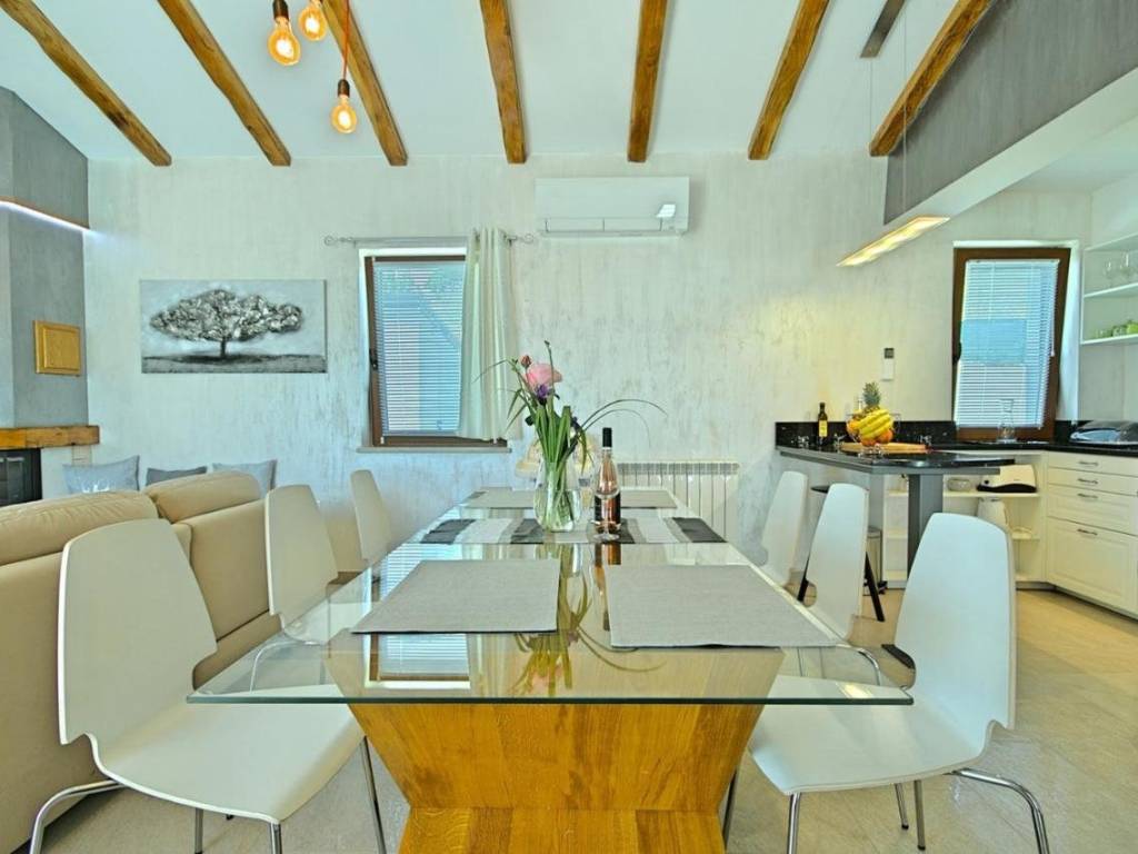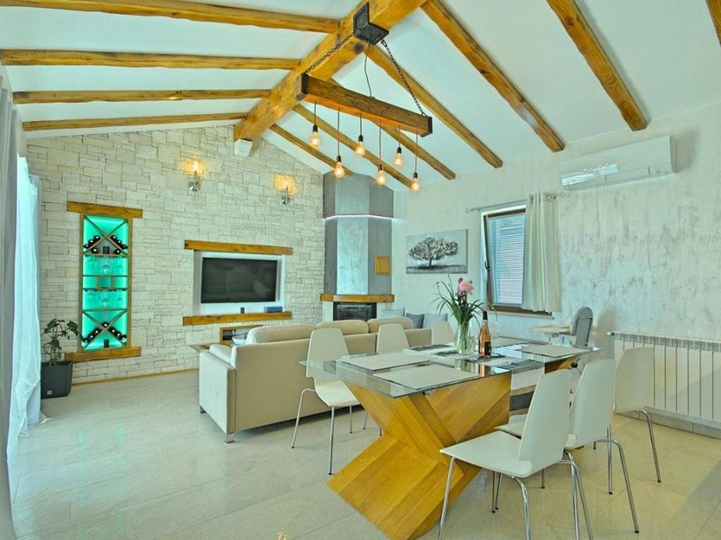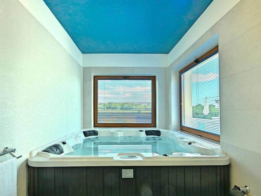 U okolici Novigrada smjestila se ova prekrasna villa stambene površine 203 m2 koje se prostire kroz prizemlje i kat. Kuća ima u prizemlju open space kuhinju, blagovaonu i dnevni boravak . Zatim u prizemlju možete pronaći i praonicu te dvije spavaće sobe, tri kupaonice-u jednoj se nalazi jacuzzi! Na prvom katu nalazi se još jedna spavaća soba sa kupaonom, garderobom i izlazom na terasu. Vila koristi solarno grijanje vode sa električnom pumpom, centralno grijanje putem kamina, dok svaka od soba ima vlastiti klima uređaj. Lijepo uređena i održavana okućnica pruža Vam sunčalište sa bazenom, dječje igralište, neizostavnu ljetnu kuhinju sa vanjskom garniturom i tri natkrivena parkirna mjesta. Dodatnu vrijednost ove prekrasne ville daje konoba koja se nalazi na okućnici i sadrži kuhinju, blagovaonicu, spavaću sobu i kupaonu. Vlasnik pravna osoba. Navedena cijena je za pravne osobe u sustavu PDV-a. Kuća se prodaje sa uhodanim poslom najma. Više na upit.