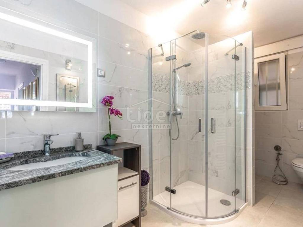 Iznajmljuje se velika dvoetažna etaža 3S+DB, ukupne površine 105 m², s terasom i prekrasnim pogledom na more. Stan je potpuno namješten i uređen, spreman za useljenje.