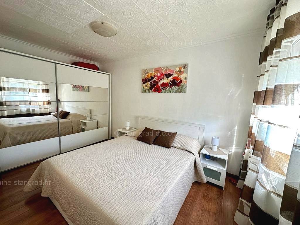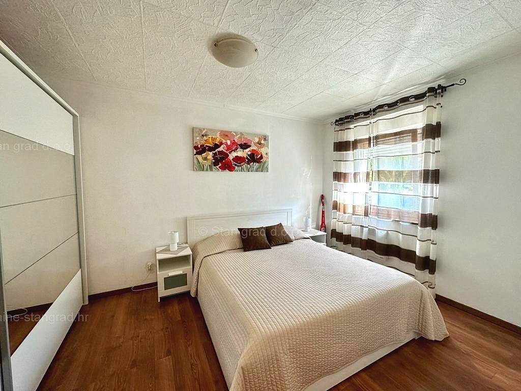 U širokoj ponudi nekretnina agencije Stan Grad Immobilien, na prodaji je tradicionalno građen apartman za turistički boravak u uvijek zanimljivoj jadranskoj regiji otok Krk. Ova nekretnina je uklopljena u dobro održavano naselje nedaleko mjesta Njivice, na lokaciji pogodnoj za miran turistički boravak. Prema vrsti, ova se nekretnina može svrstati u kategoriju jednoetažnih apartmana srednje veličine. Unutar solidno izgrađenog objekta, apartman je smješten na 2. etaži. Apartman obuhvaća ukupnu površinu od približno 84 m2. Navedena površina obuhvaća ulazni hodnik, dnevni boravak, kuhinju s blagovaonom, 2 spavaće sobe, kupaonu, zasebni wc-a i spremište u podrumu. Unutrašnjost nekretnine je nedavno obnovljena zamjenom instalacija, podnih i zidnih obloga te soboslikarskim radovima, a prostor kompletno namješten novim namještajem i aparatima. Vlasnik apartmana ima mogućnost parkiranja vozila na javnoj površini u blizini apartmana. Osim ranije navedenih svojstava, ovaj apartman ima pogled na uređenu okolicu i prirodni krajolik. Predmetni je apartman u vlasništvu fizičke obveze i kod prijenosa vlasništva podliježe obračunu poreza na promet nekretnina u visini 3%. Prodavatelj nekretnine jamči urednu građevinsku i vlasničku dokumentaciju te brz prijenos nekretnine na ime kupca. Obratite nam se s povjerenjem na adresi poslovnice na otoku Krku i bit ćemo vaš partner za sigurnu kupnju nekretnine na Kvarneru. Ukažete li nam svoje povjerenje, za vas će agencija Stan Grad Immobilien obaviti sve potrebne administrativne postupke vezane za uknjižbu i prijenos nekretnine.