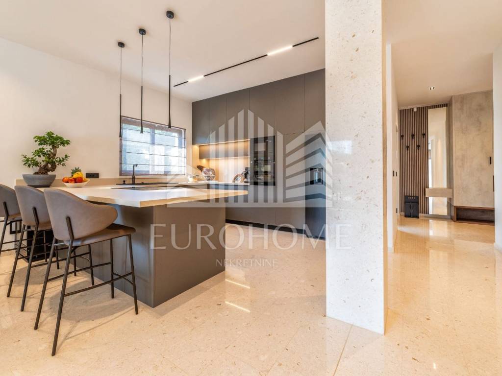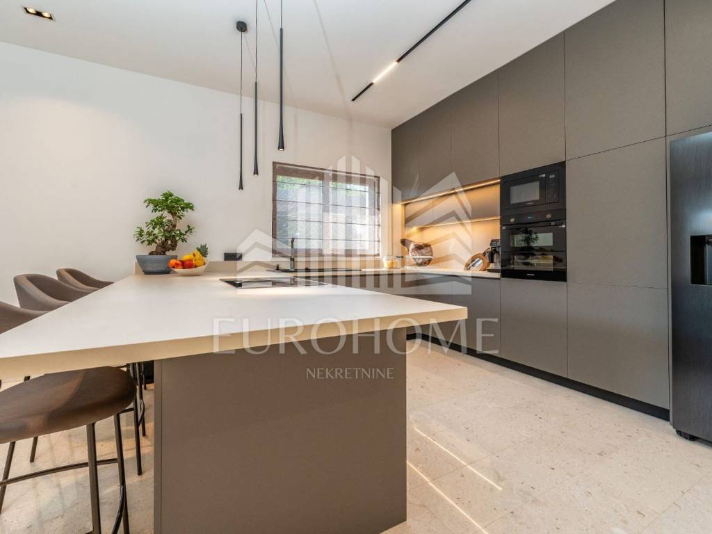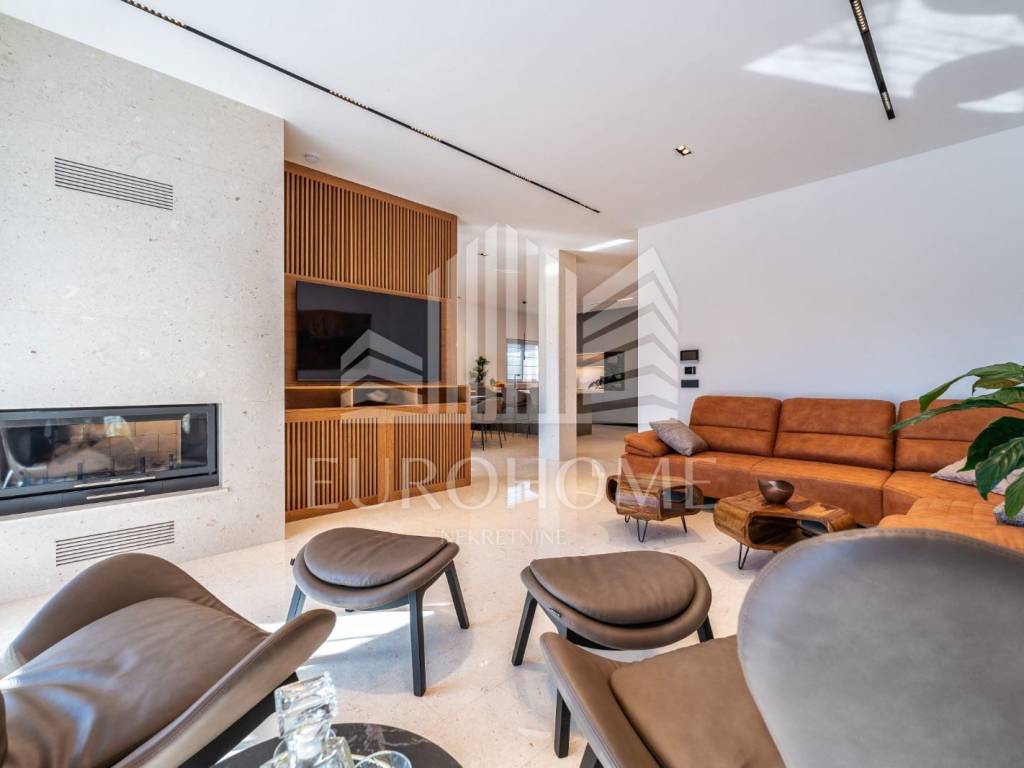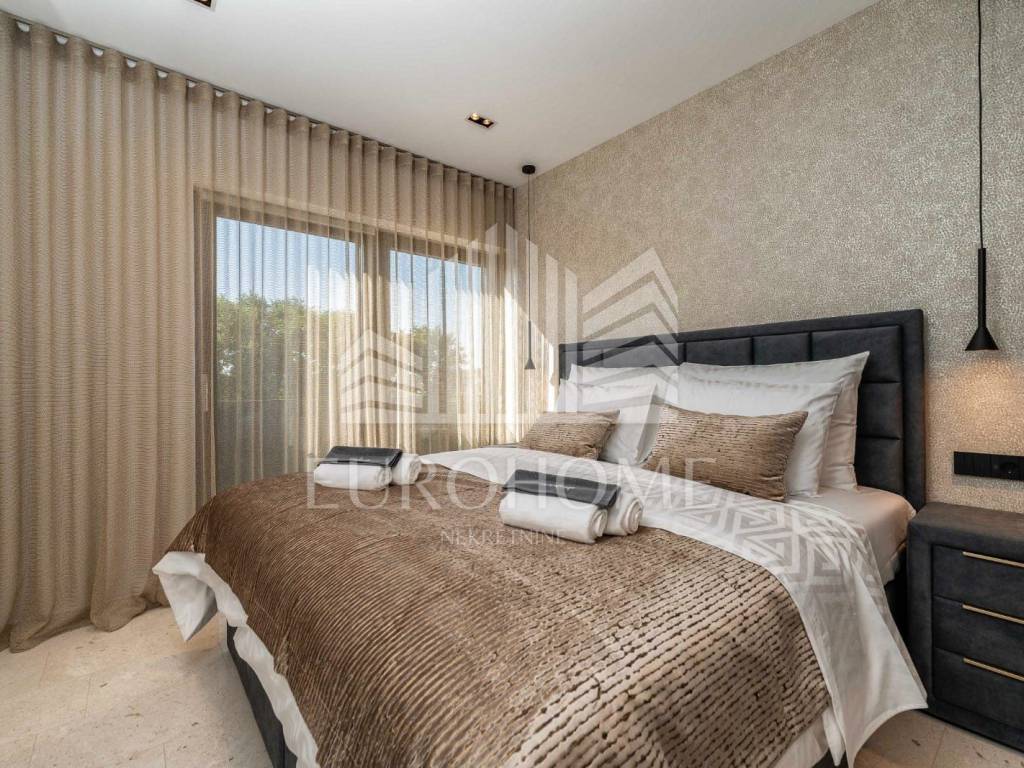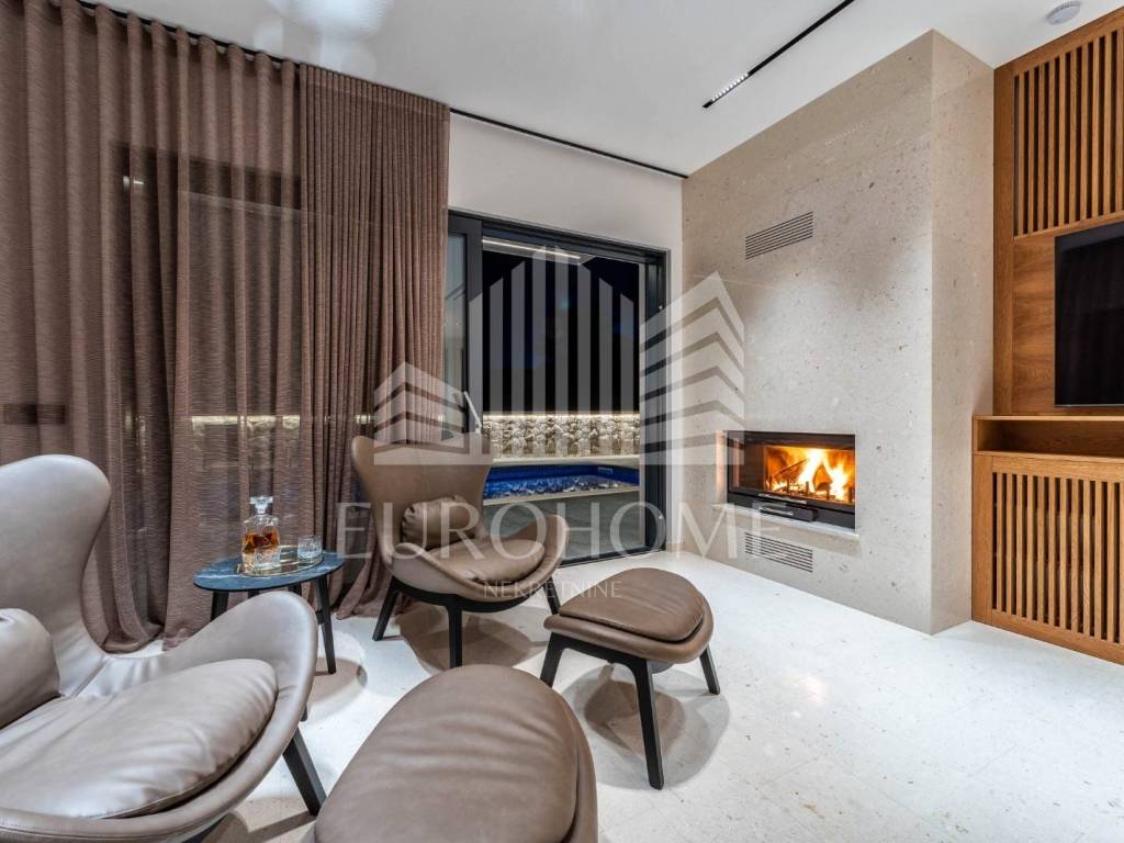 Godina izgradnje je 2023. Podovi su obloženi poliranim kamenim pločama iz kamena Plano. U kupaonicama su zidovi obloženi keramikom velikog formata (280x120 cm) a na podovima su polirane kamene ploče kao u ostatku prostora. Vanjski prozori i vrata su iz aluminijskih profila sa troslojnim staklom ispunjenim plinom. Na fasadi je sloj termoizolacije debljine 10 cm. Vila je kompletno namještena dizajnerskim namještajem i opremljena na visokom nivou. Namještaj u dnevnom boravku i blagovaoni je marke Caligaris a kuhinja i i sav ostali namještaj u kući su rađeni po mjeri. Vila se prodaje u potpunosti opremljena i namještena.