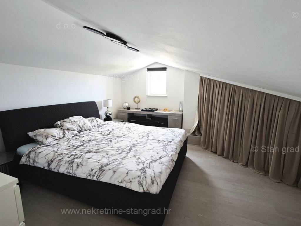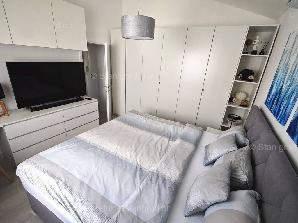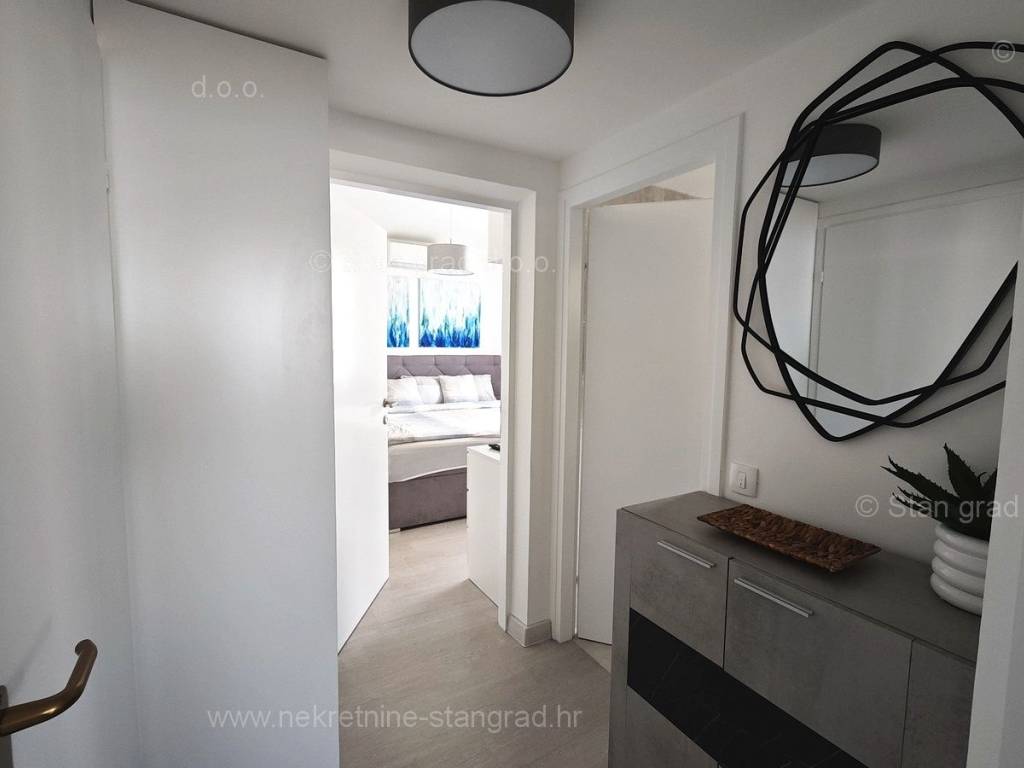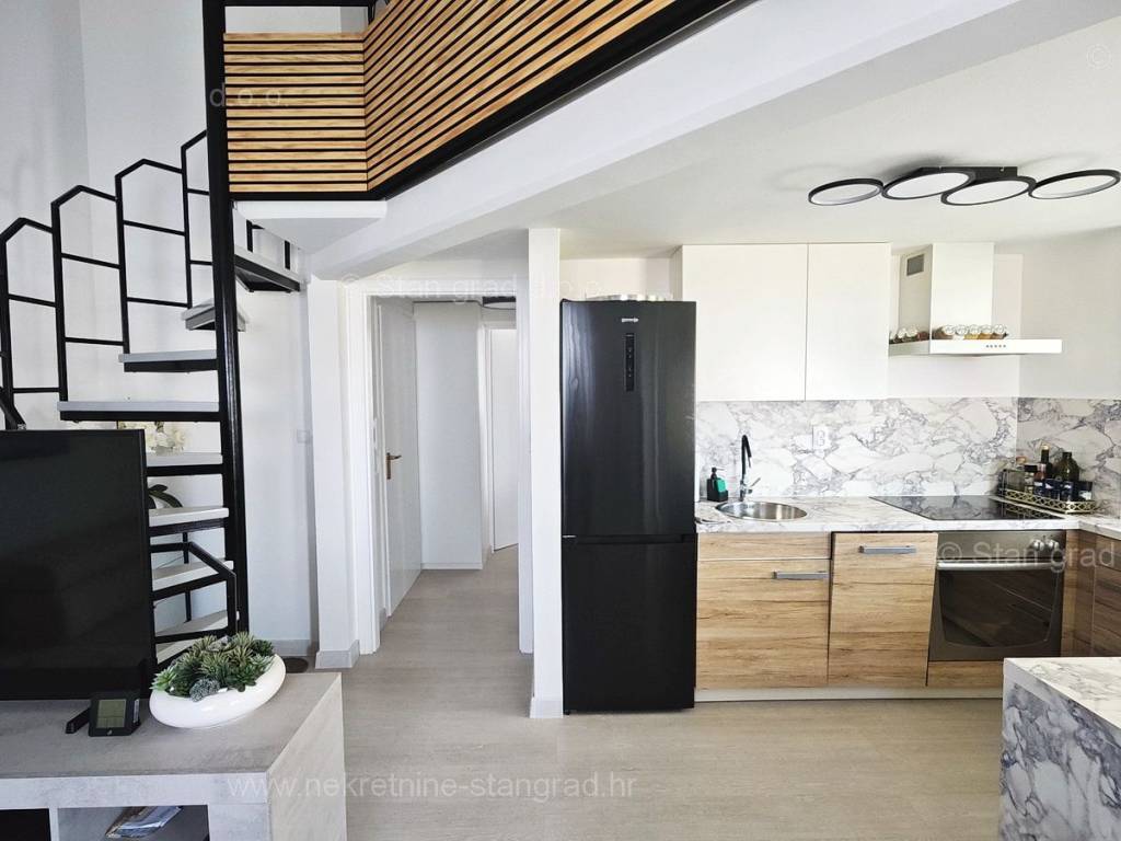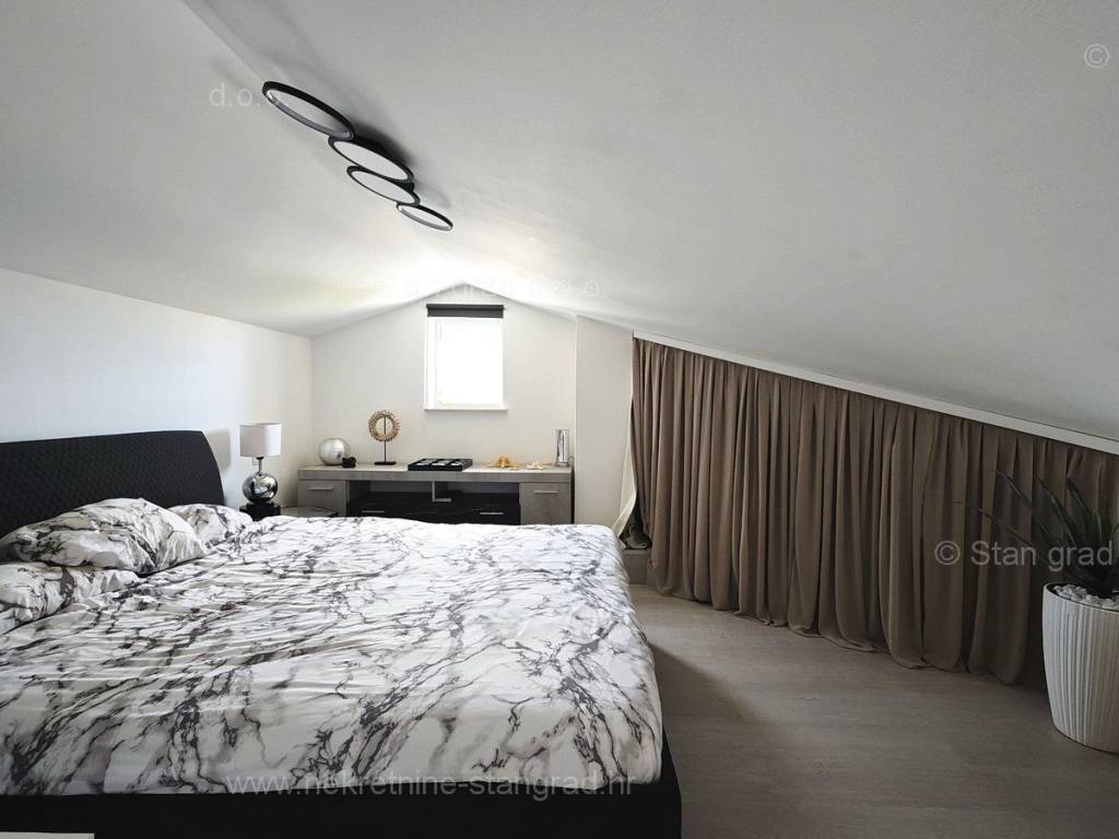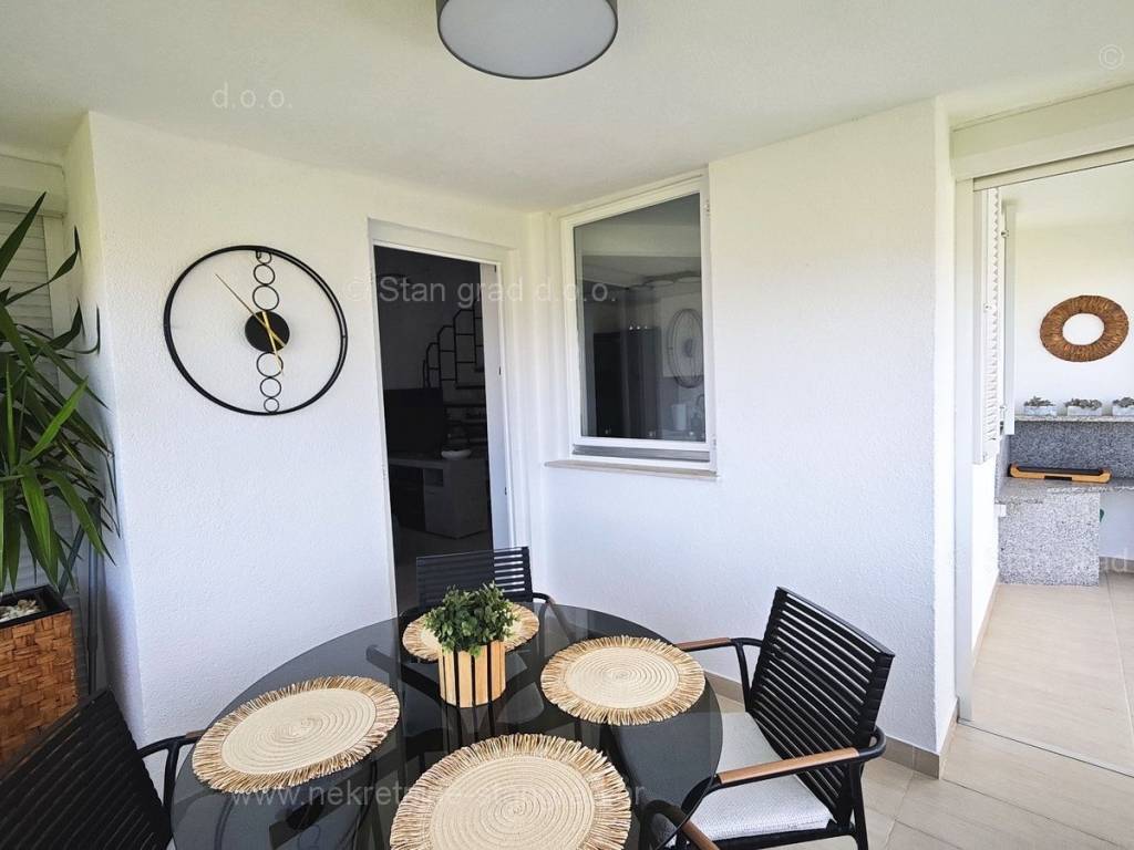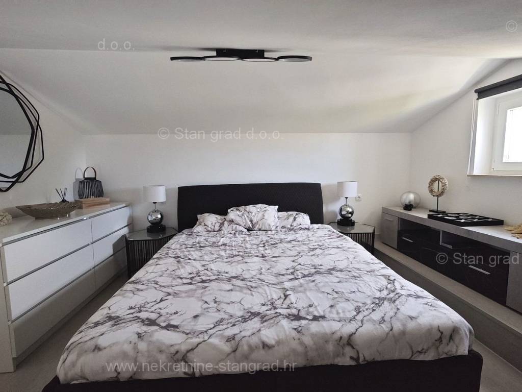 U ponudi naše agencije na super atraktivnom sjevernojadranskom području Otok Krk se prodaje potpuno uređen apartman koji pruža savršen ugođaj provođenja godišnjih i vikend odmora. Predmetna nekretnina je lijepo uklopljena u lijepo planirani prostor simpatičnog mediteranskog naselja nedaleko središta mjesta Malinska i svih potrebnih sadržaja. Po vrsti nekretnine, to je dvoetažni apartman s unutarnjim stepenicama. Apartman zauzima ukupnu površinu od približno 47 m2, u naravi je ta površina nešto veća od 65 m2. Sastoji se od hodnika, dnevnog boravka, kuhinje, sobe, kupaonice, velike terase s pogledom na more te unutarnjih stepenica koje vode na galeriju gdje je još jedna spavaća soba. Interijer nekretnine je kompletno opremljen novim, kvalitetnim tehničkim uređajima te jedinstveno oblikovanim namještajem. Vlasnik apartmana na raspolaganju ima jedno parkirno mjesto. Uz prethodne tehničke i prostorne značajke, značajno je izdvojiti i lijepu orijentaciju apartmana koja nudi ugodan pogled na more i prirodu. Ovaj apartman je u vlasništvu fizičke osobe i na ime njegovog prijenosa kupac je u obvezi plaćanja poreza na promet nekretnine u visini 3%. Prodavatelj nekretnine jamči urednu građevinsku i vlasničku dokumentaciju te brz prijenos nekretnine na ime kupca. Najavite se i rado ćemo vas primiti u našem uredu na otoku Krku. Poklonite li nam svoje povjerenje, agencija Stan Grad Immobilien rado će vam pomoći u prijenosu vlasničkih prava ove nekretnine te računa za njene komunalne priključke i usluge na vaše ime.