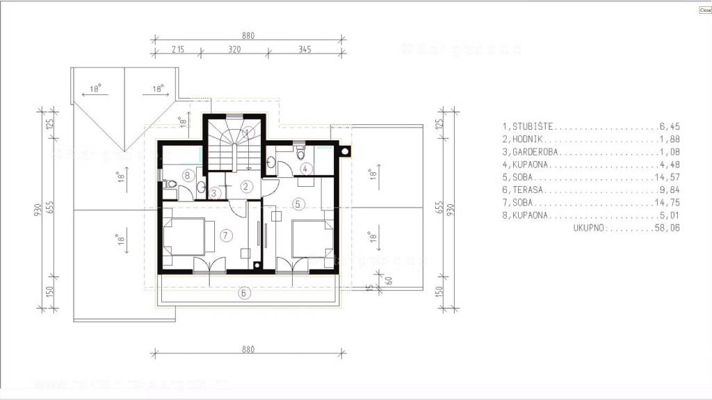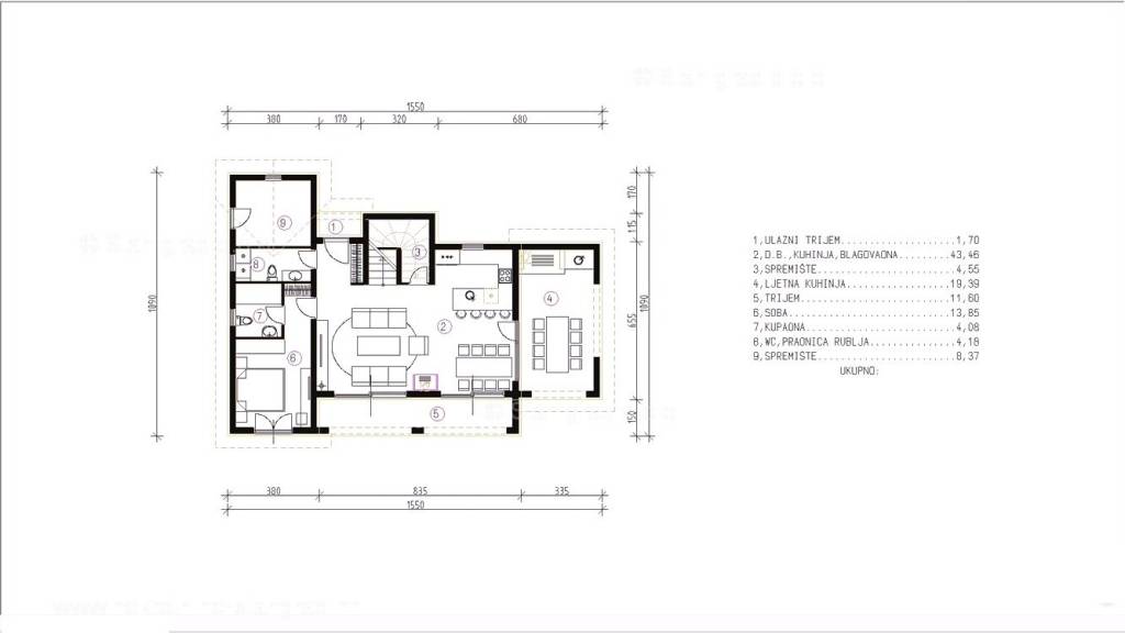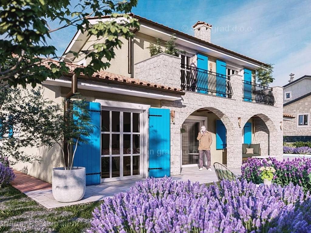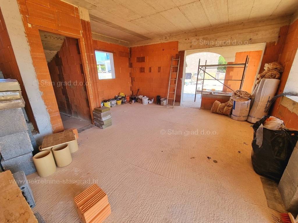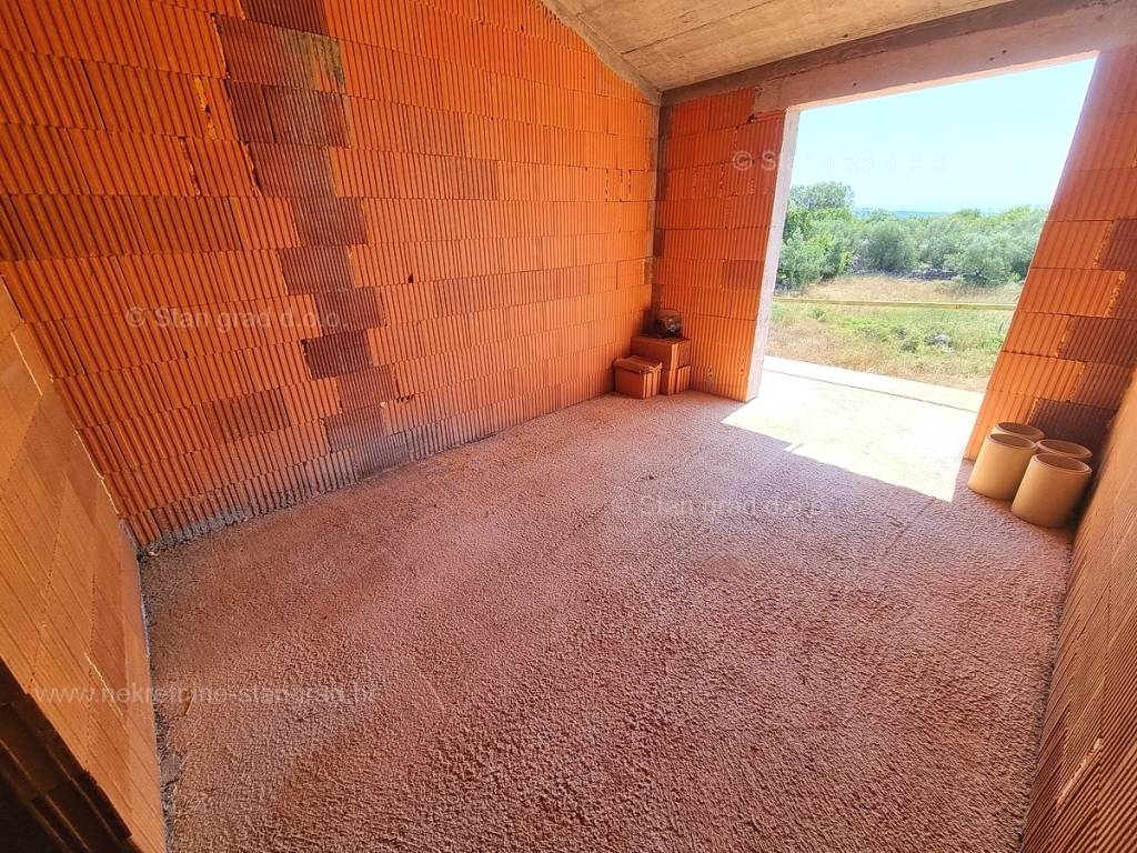 Gledajući strukturno, ovo je samostojeća kuća katnica. Vrlo lijepa građevina je izvedena na 2 prostorno iskoristive etaže. Površina ove kuće iznosi ukupno 169 m2. Ovu površinu zauzimaju dnevni boravak i kuhinja, gostinjski toalet, praonica rublja i spavaća soba s vlastitom kupaonicom u prizemlju, a na katu se nalaze dvije spavaće sobe s vlastitim kupaonicama i terasa s pogledom na more.