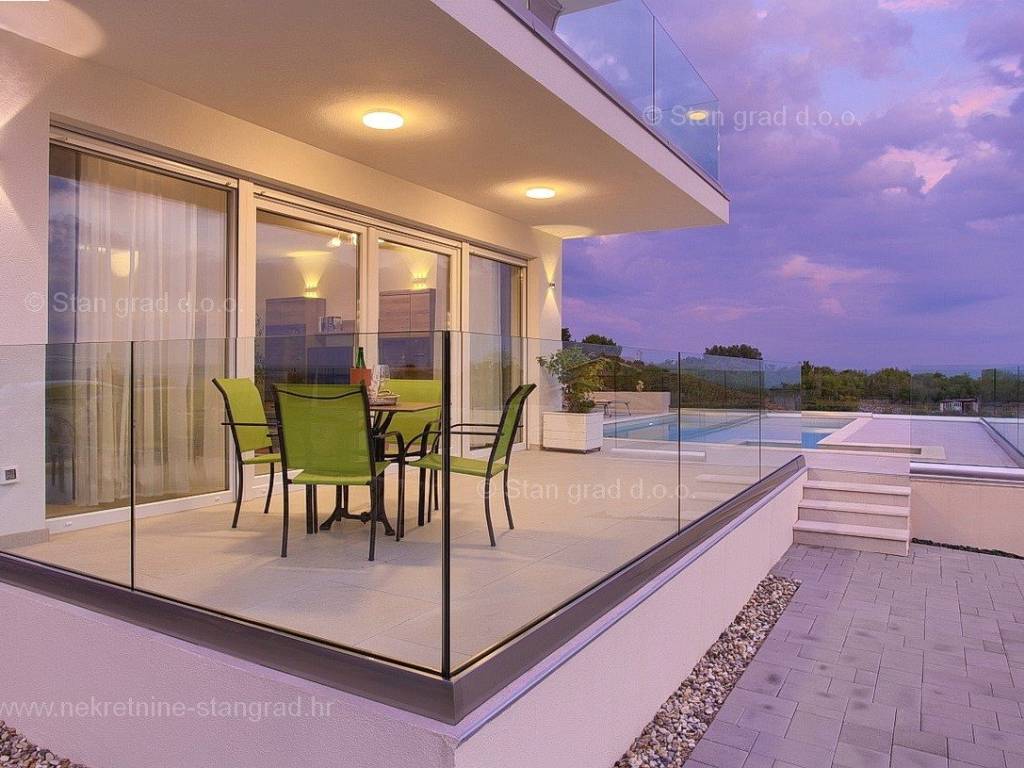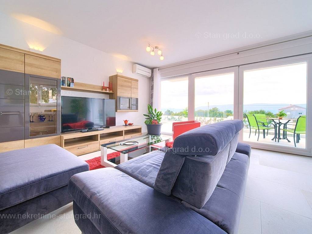 Iz ponude odličnih nekretnina kod naše agencije na sjevernom Jadranu ističe se moderan apartman sagrađen na području tražene hrvatske obalne regije otok Krk. Ovaj apartman je sagrađen u dobro urbaniziranom i pitomom primorskom naselju u okolici grada Krka. U naravi je to vrlo prostrani i komforni jednoetažni apartman. U okviru moderno projektirane građevine, apartman se pruža preko prizemne etaže. Površina ovog apartmana iznosi ukupno 83 m2. Tom površinom obuhvaćeni su dnevni boravak i kuhinja, 2 spavaće sobe, 2 kupaonice i natkrivena terasa. U izvanredno održavani i raskošno namješteni interijer predmetne nekretnine je instaliran bogati set uređaja novije generacije. Posebnu čar ovom apartmanu daje iznimno uređena pripadajuća okućnica koja sadržava vrt sa sjenicom, zidani roštilj i ljetnu kuhinju. Na pripadajućem dijelu okućnice opisane nekretnine može se komforno parkirati dva automobila, od toga je jedno natkriveno parkirno mjesto. Povrh ranije opisanih svojstava, nekretnina je vrlo dobro orijentirana te pruža primamljiv pogled iz apartmana na more i prirodni krajolik. Ovaj apartman je u vlasništvu fizičke osobe i na ime njegovog prijenosa kupac je u obvezi plaćanja poreza na promet nekretnine u visini 3%. Prodavatelj nekretnine garantira brz prijenos vlasničkih prava te urednu vlasničku i tehničku dokumentaciju. Srdačno ste dobrodošli na naš zlatni otok Krk i u našu kvarnersku poslovnicu. Povrh prezentacije nekretnine i njenog pravnog statusa te vođenja pregovora s prodavateljem nekretnine, naš će stručni tim kupcu asistirati prilikom prijepisa vlasništva apartmana te prenošenju računa za električnu energiju, vodoopskrbu i komunalne usluge na svoje ime.