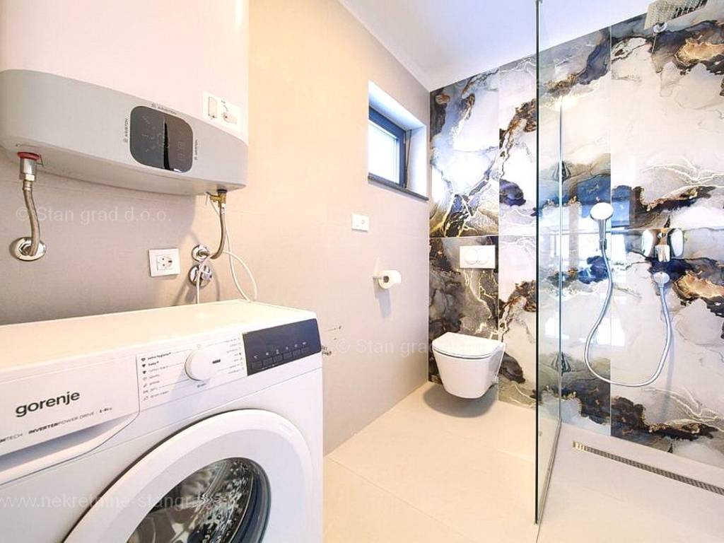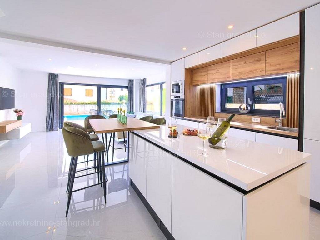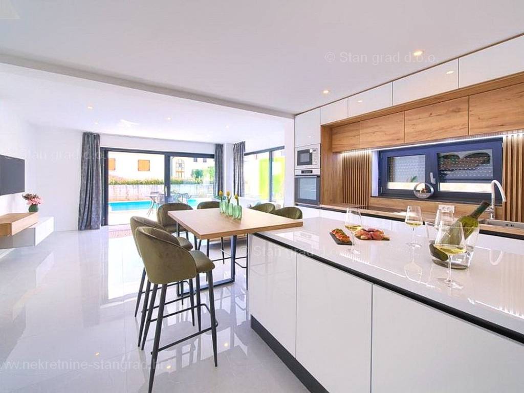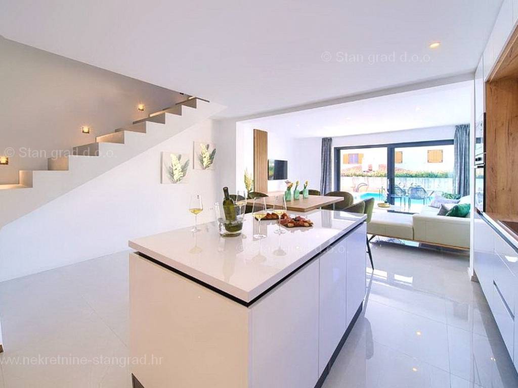 U agenciji Stan Grad Immobilien na prodaji je zanimljiv apartman za odmor unutar tradicionalno najtraženijeg hrvatskog primorskog jadranskog područja otok Krk. Navedeni se apartman nalazi na kvalitetnoj i urbaniziranoj poziciji nedaleko mora i središta mjesta Malinska. Po tipu nekretnine je ovo prostrani dvoetažni apartman s ulazom na nižoj etaži. U okviru vrlo lijepe građevine, apartman je pozicioniran u prizemlju i na 1. katu. Površina ovog apartmana iznosi ukupno 91 m2. Navedenom površinom su obuhvaćeni u prizemlju dnevni boravak i kuhinja, kupaonica i terasa, a na katu 3 spavaće sobe, 2 kupaonice i natkrivena terasa površine cca 8 m2. Unutarnji prostori nekretnine su osobito dobro održavani te u potpunosti opremljeni potrebnim tehničkim uređajima i vrlo kvalitetnim namještajem. Za istaknuti je da dodanu vrijednost apartmanu daje pripadajuća okućnica površine 124 m2 oplemenjena bazenom i sunčalištem. Vlasnik apartmana na raspolaganju će imati jedno parkirno mjesto. Uz ranije navedeno, apartman ima vrlo dobru orijentaciju te nudi lijep pogled na prirodni morski krajolik. Ovaj je apartman vlasništvo fizičke osobe pa je kupac prilikom prijepisa njegovog vlasništva na svoje ime u obvezi plaćanja poreza na promet u visini 3%. Prodavatelj jamči za urednost relevantne tehničke i vlasničke dokumentacije, kao i za mogućnost brzog i nesmetanog prijenosa vlasništva apartmana na kupca. Očekujemo vas na Kvarneru s uvjerenjem u vaše zadovoljstvo našom uslugom. Povrh stručnog prezentiranja naravnog i pravnog stanja nekretnine, ako se odlučite za kupovinu, agencija Stan Grad Immobilien rado će vam rado pomoći u prijenosu vlasništva nekretnine.
