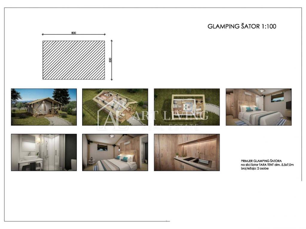 POSEBNOSTI ZEMLJIŠTA Blizina mora – 1,3 km Blizina Kampa Monperin i Ville Meneghetti – 600 m Blizina građevinske zone Izrađen projekt za Glamping kamp Voda, septička, iskop za bazen, ograda, asfaltni put Blizina novih golf terena