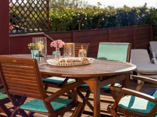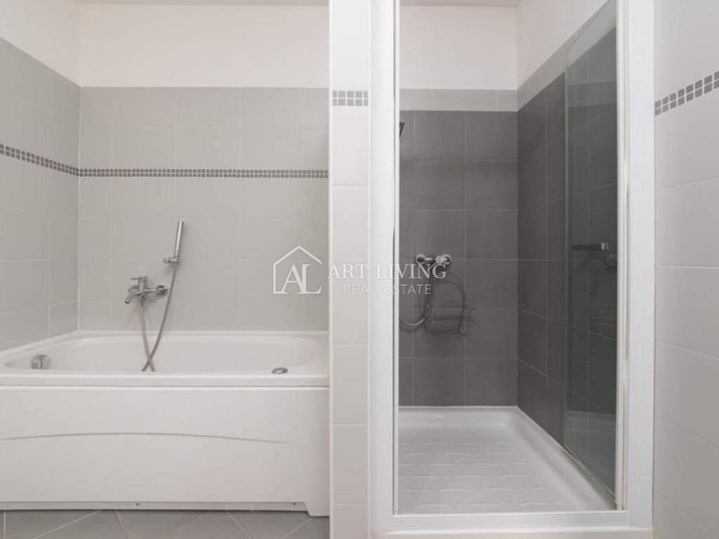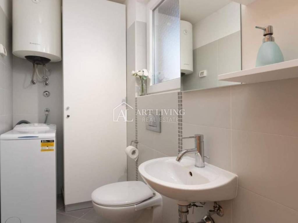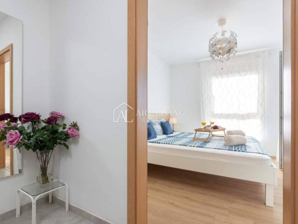 Kuća je kompletno ograđena sa uređenim vrtom površine 66 m2. Također ima dva vlastita parkirna mjesta te se prodaje kompletno namještena i uređena.