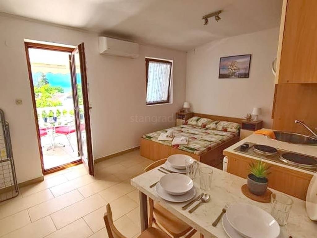 Gledajući strukturno, ovo je samostojeća kuća katnica. Lijepo uređena kuća sastoji se od sveukupno 2 prostorno korisne etaže. Kuća se sastoji od 3 odvojena stana. Nekretnina obuhvaća ukupnu površinu od 120 m2. U navedenoj površini sadržani su u prizemlju jedan dvosoban apartman s terasom, a na katu se nalaze dva studio apartmana s terasama s kojih se pruža pogled na more. Interijer nekretnine je vrlo dobro održavan te kompletno opremljen svim potrebnim tehničkim uređajima i kvalitetnim namještajem.