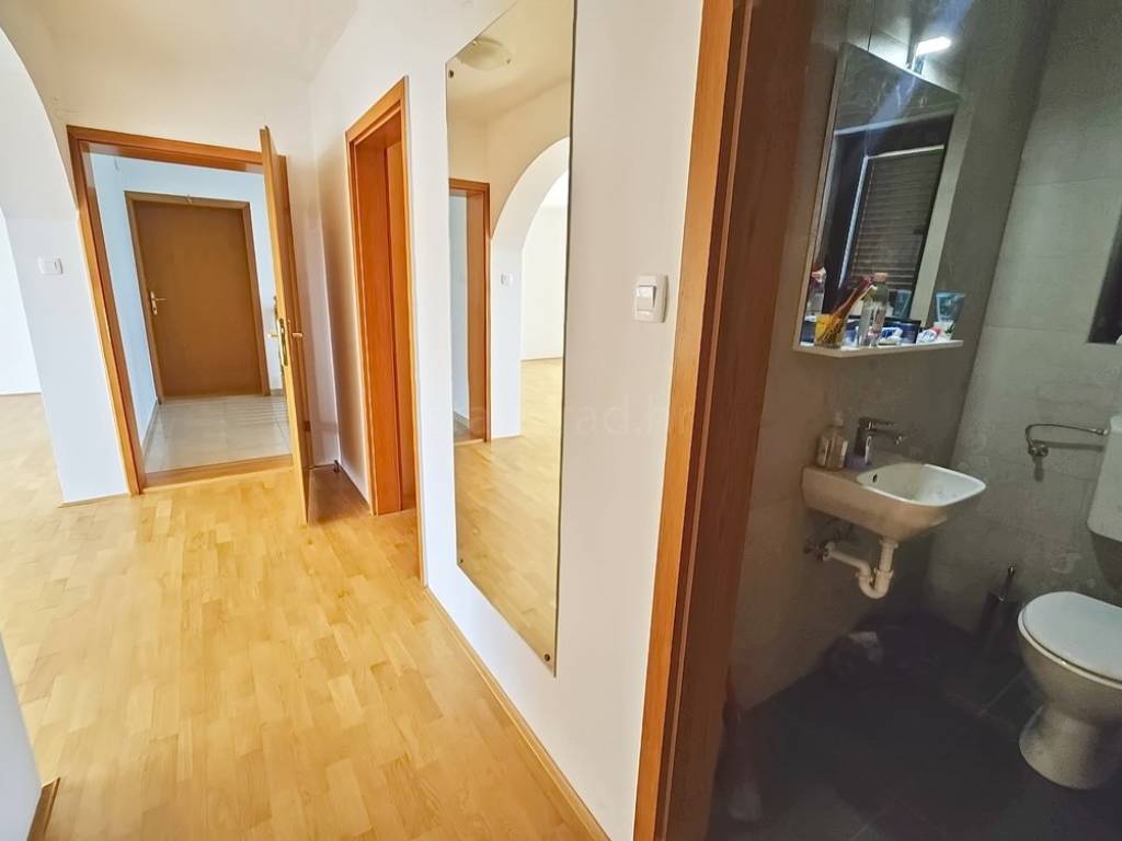 Ovaj prostrani apartman, površine 108 m², smješten je na prvom katu kvalitetne stambene zgrade. Tlocrtno izvrsno osmišljen, sastoji se od ulaznog hodnika, prozračnog dnevnog boravka povezanog s kuhinjom i blagovaonicom, tri udobne spavaće sobe, kupaonice, wc-a, natkrivene lođe te nenatkrivene terase savršene za uživanje na otvorenom. Apartman je prazan, bez starog namještaja, što budućem vlasniku omogućuje lako i brzo uređenje prema vlastitom ukusu.