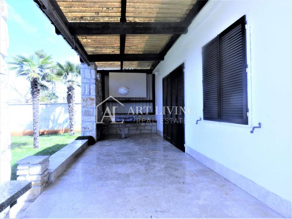 Mirna i atraktivna lokacija prvi red do mora uz samu pješčanu plažu čine ovu nekretninu iznimnom i rijetkom prilikom za sve koji traže kuću s okućnicom na moru koju je moguće prilagoditi kako za stanovanje ili odmor tako i za iznajmljivanje u turističke svrhe.