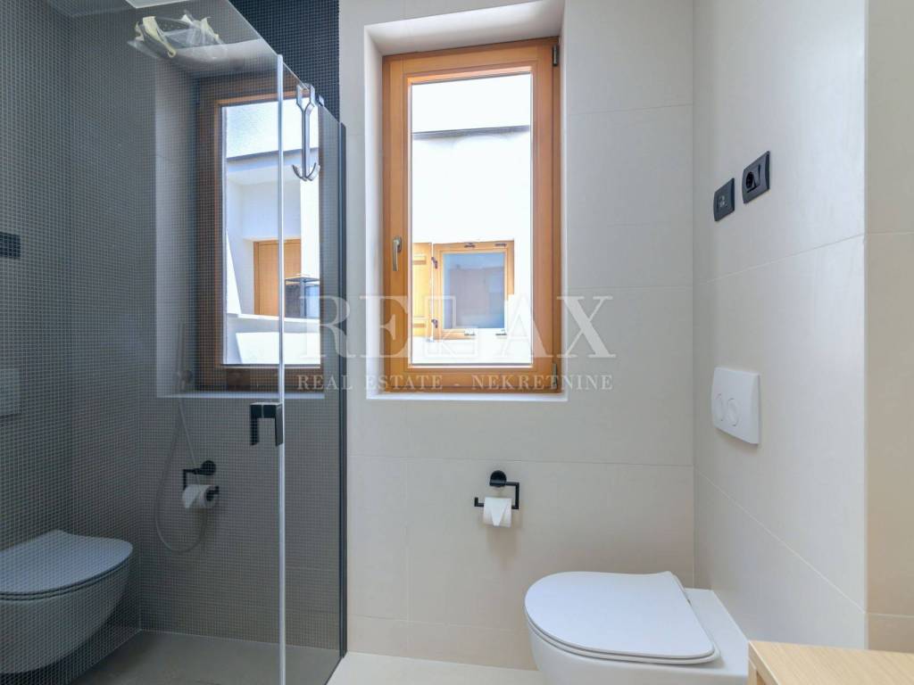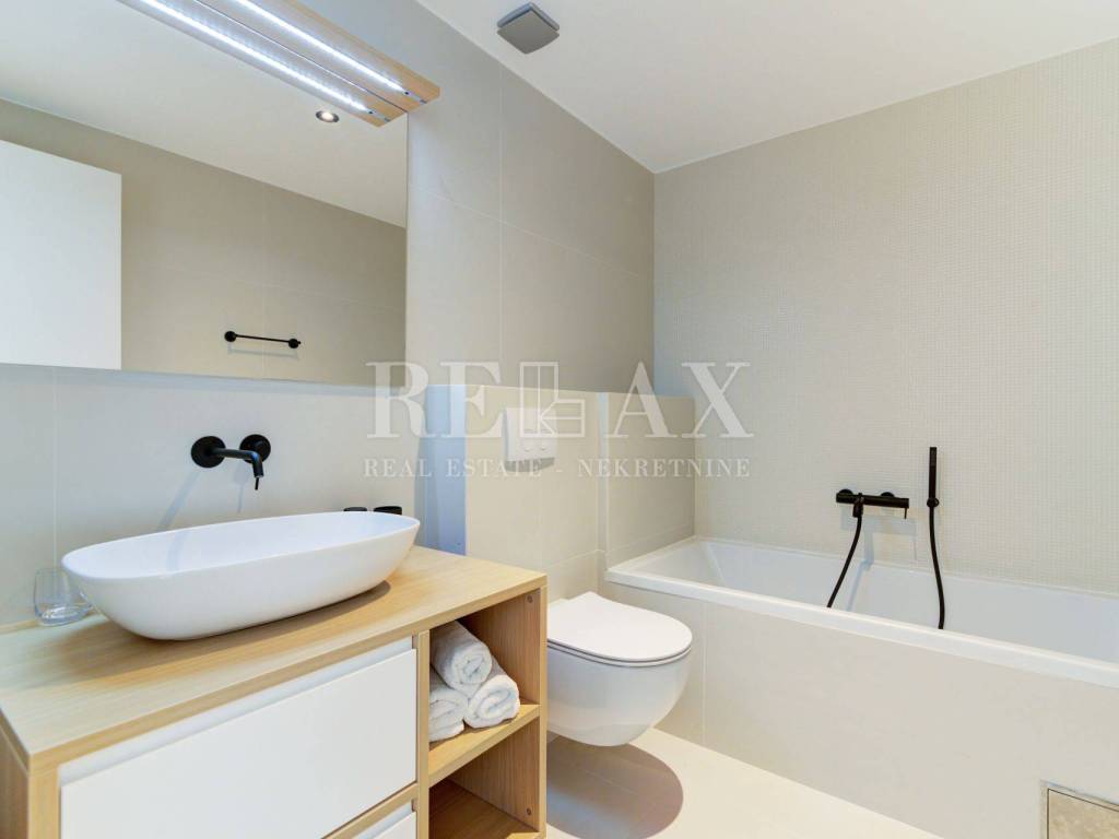 Stan se prodaje kompletno namješten, opremljen je kvalitetnim namještajem i talijanskom keramikom, ima podno grijanje i klimatiziran je.