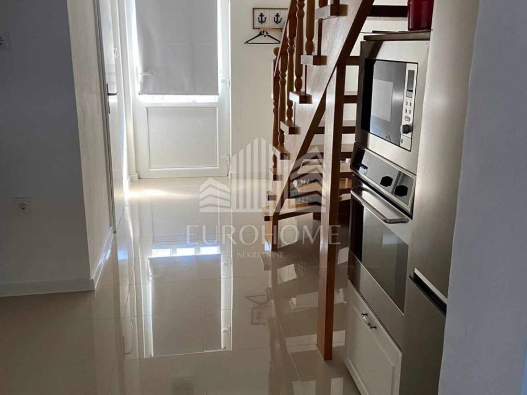 Dvoetažni dvosobni stan na prvom katu i potkrovlju, sastoji se od dnevnog boravka, kuhinje,