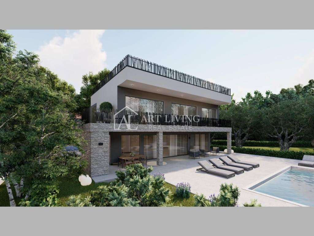 Prodaje se prekrasna luksuzna vila s bazenom u izgradnji na TOP lokaciji, prvi red do mora (300 m) s predivnim pogledom na more.