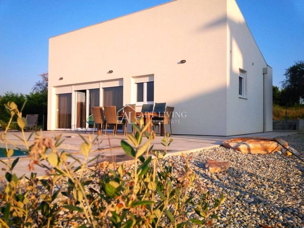 Prodaje se moderna vila s bazenom smještena u mirnom i lijepom naselju okružena prirodom i zelenilom udaljena 3 km od mora, 8 km od grada Novigrada, 12 km od grada Poreča, 30 km od graničnog prijelaza sa Slovenijom, 51 km od Zračne luke Pula i 60 km od zračne luke Trst.