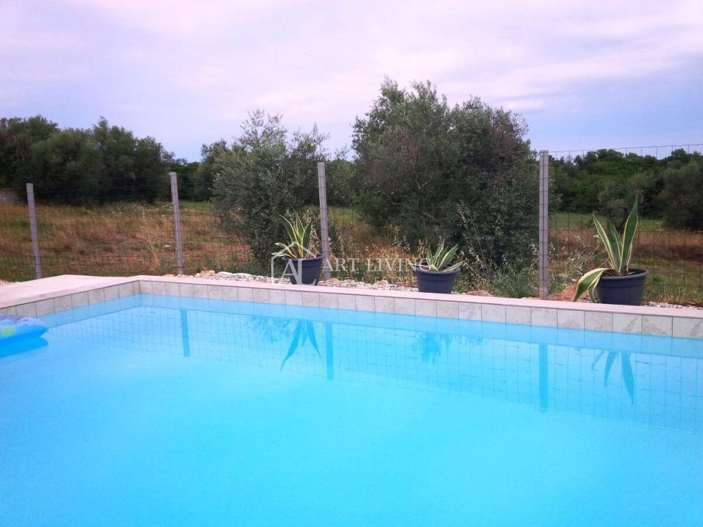 Ova prekrasna prizemnica površine 110 m2 , sastoji se od ulaza, dnevnog boravaka, s kuhinjom i blagovaonicom, 3 spavaće sobe sa vlastitom kupaonicom te dodatnog wc-a u kotlovnici. Iz dnevnog boravka i blagovaonice otvorenog tipa pristupa se direktno popločenoj terasi i bazenu.