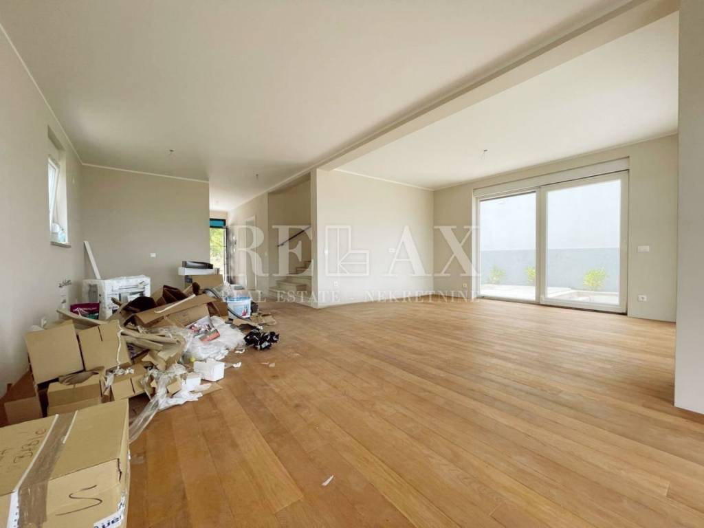 Na prizemlju očekuje vas prostrana ostava, moderno uređena kupaonica, udobna spavaća soba te impresivan open-space prostor koji objedinjuje kuhinju, blagovaonicu i dnevni boravak. Visokokvalitetni materijali i pažljivo dizajniran interijer pružaju osjećaj topline i udobnosti te omogućuju uživanje u svakom trenutku.