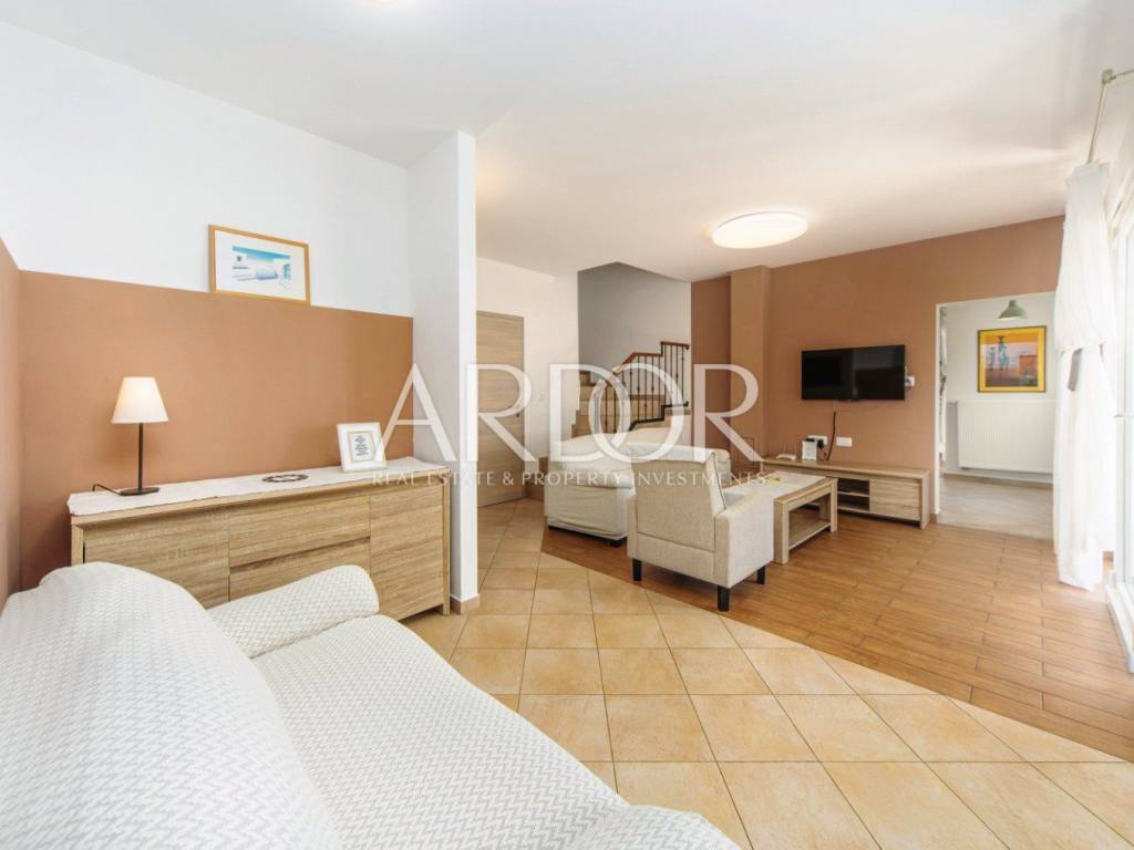 Grijanje je centralno etažno na plin i klima uređaje. Kuća se iznajmljuje potpuno namještena i opremljena svim aparatima (perillica, TV, posuđe, mikrovalna pećnica...)