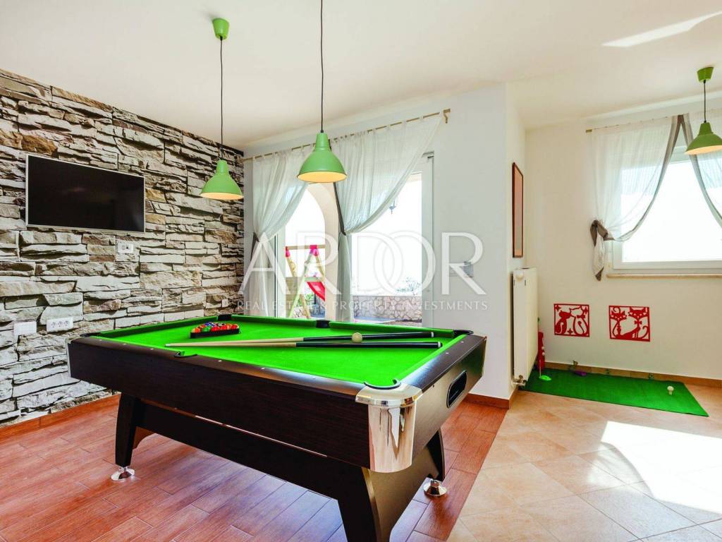 Na okućnici veličine 500 m2 smjestio se bazen i roštilj, te prostor za zabavu za djecu.