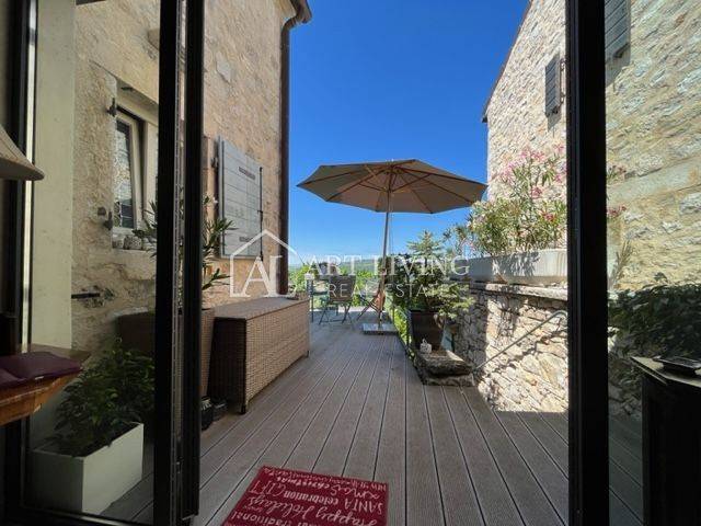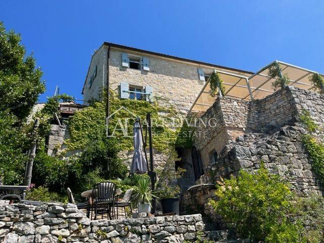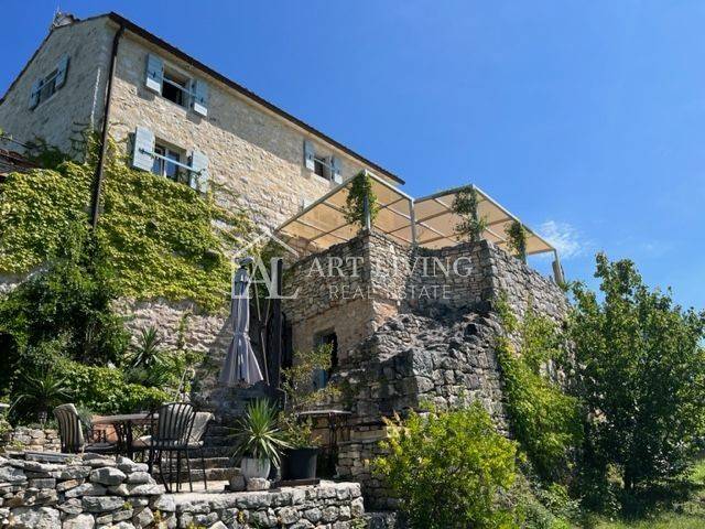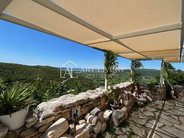 BUJE - okolica, kamena Istarska vila s jedinstvenim pogledom na more i pejzaž.