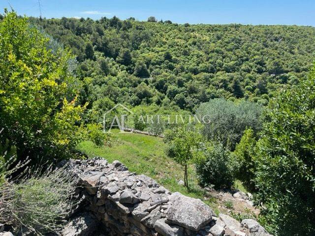 Ispred vile prostire se kaskadno uređeno zemljište površine 1780 m2 na kojem rastu voćke, masline, trava.