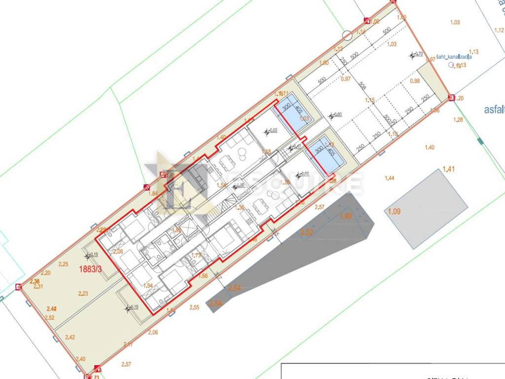Spavaća soba 1: 11.75m² Spavaća soba 2: 10.74m² Spavaća soba 3: 13.64m² Hodnik: 7.78m² Ulazni prostor: 3.85m² Dnevni boravak: 41.92m2 Prostorija za bojler: 1.54m² Kupaonica 1: 3.72m² Kupaonica 2: 4.95m² Kupaonica 3: 3.99m² Balkon: 10m2 Loggia:19.33m2 Osim toga, stan će uključivati i privatni vrt, bazen te dva vanjska parkirna mjesta. Planirani završetak gradnje je početak 2026. godine, što će omogućiti budućim vlasnicima da u fazi gradnje prilagode stan svojim željama.