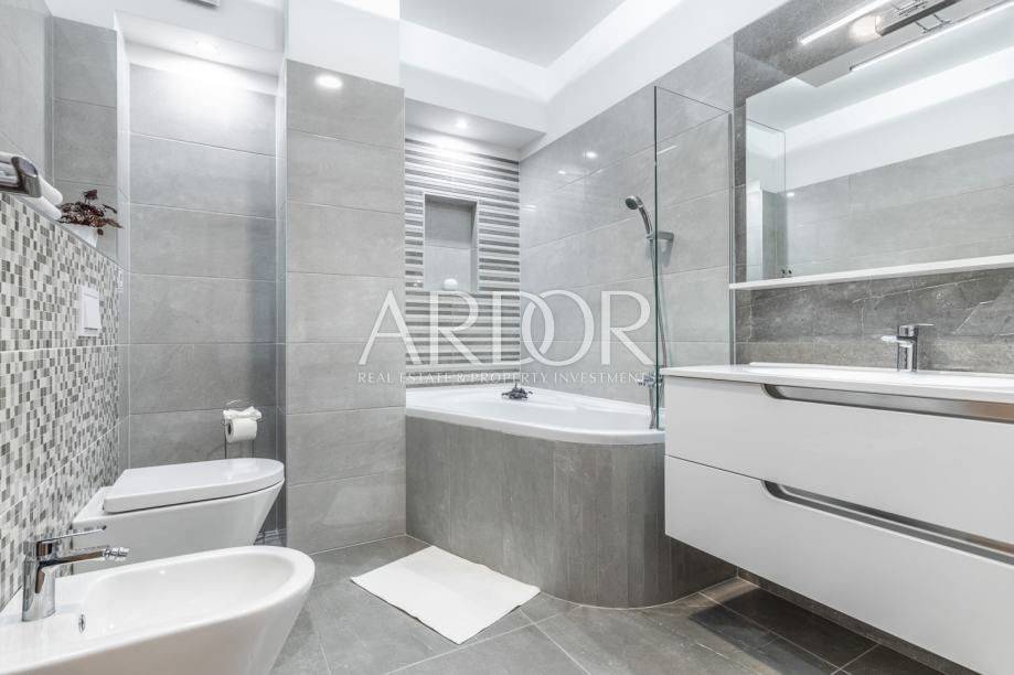 U objektu je osigurana i dodatna udobnost – mali fitness i igraonica smješteni u garaži. Stan je potpuno namješten i orijentiran prema jugu, što osigurava obilje prirodnog svjetla. Grijanje je riješeno sustavom klimatizacije.