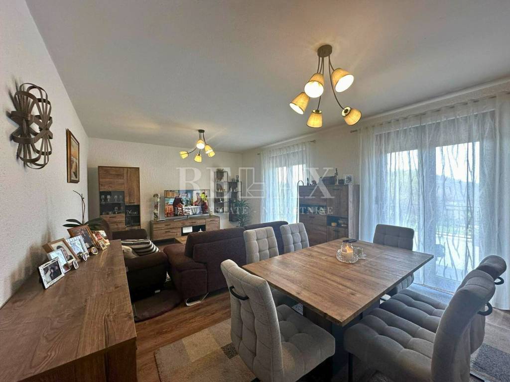 Okružena prostranom okućnicom od 1500 m², ova nekretnina pruža dovoljno prostora za uživanje u vanjskim aktivnostima i vrtlarstvu, s dodatnim pogodnostima kao što su drvarnica i četiri privatna parkirna mjesta.