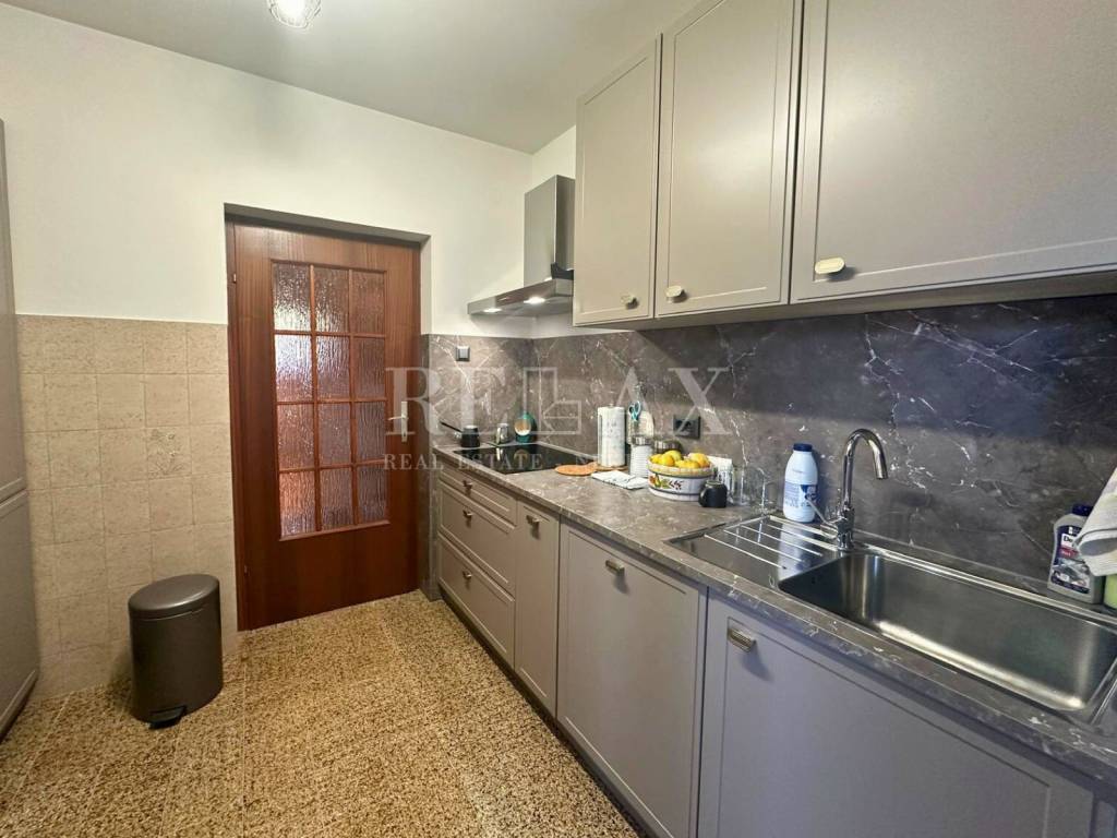 Ova nekretnina raspoređena je na tri etaže. U prizemlju kuće nalazi se stan od 86 m² koji uključuje dvije spavaće sobe, ostavu, prostranu kupaonicu, funkcionalnu kuhinju, blagovaonicu te udobni dnevni boravak.
