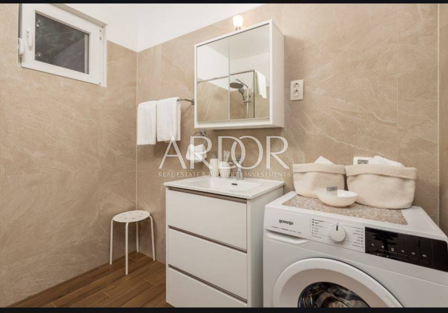 Stan je opremljen svim potrebnim uređajima, uključujući perilicu posuđa, a dostupan je i kompletan kućanski pribor poput posuđa i posteljine. Osigurano je jedno vanjsko nenatkriveno parkirno mjesto unutar objekta.