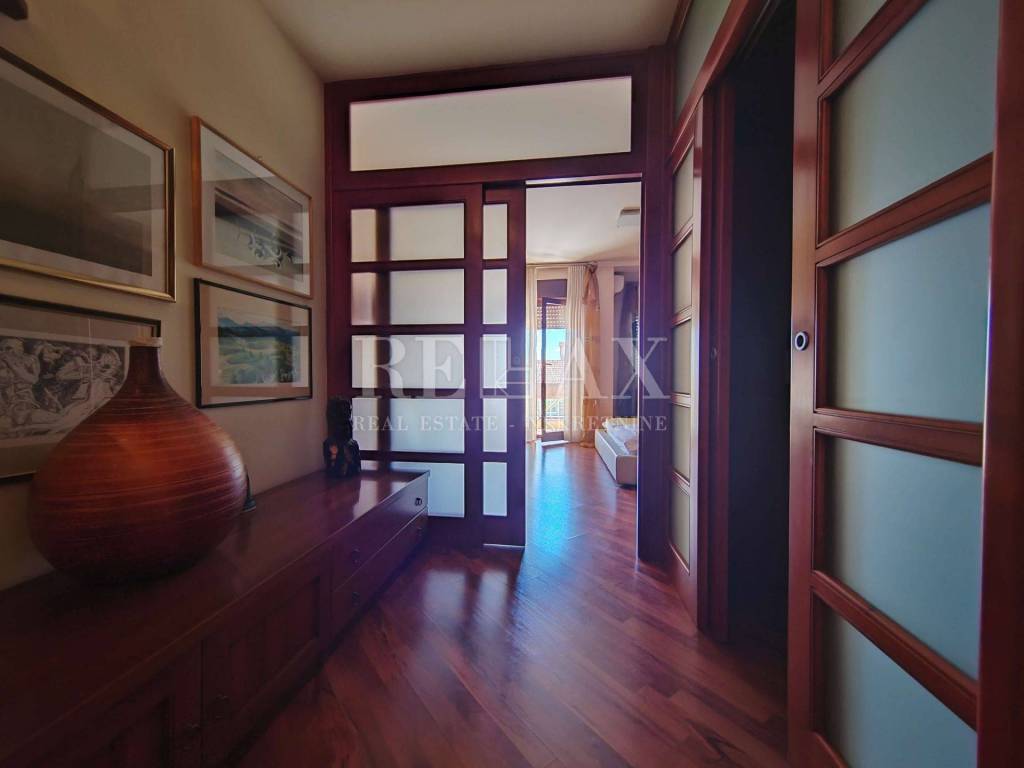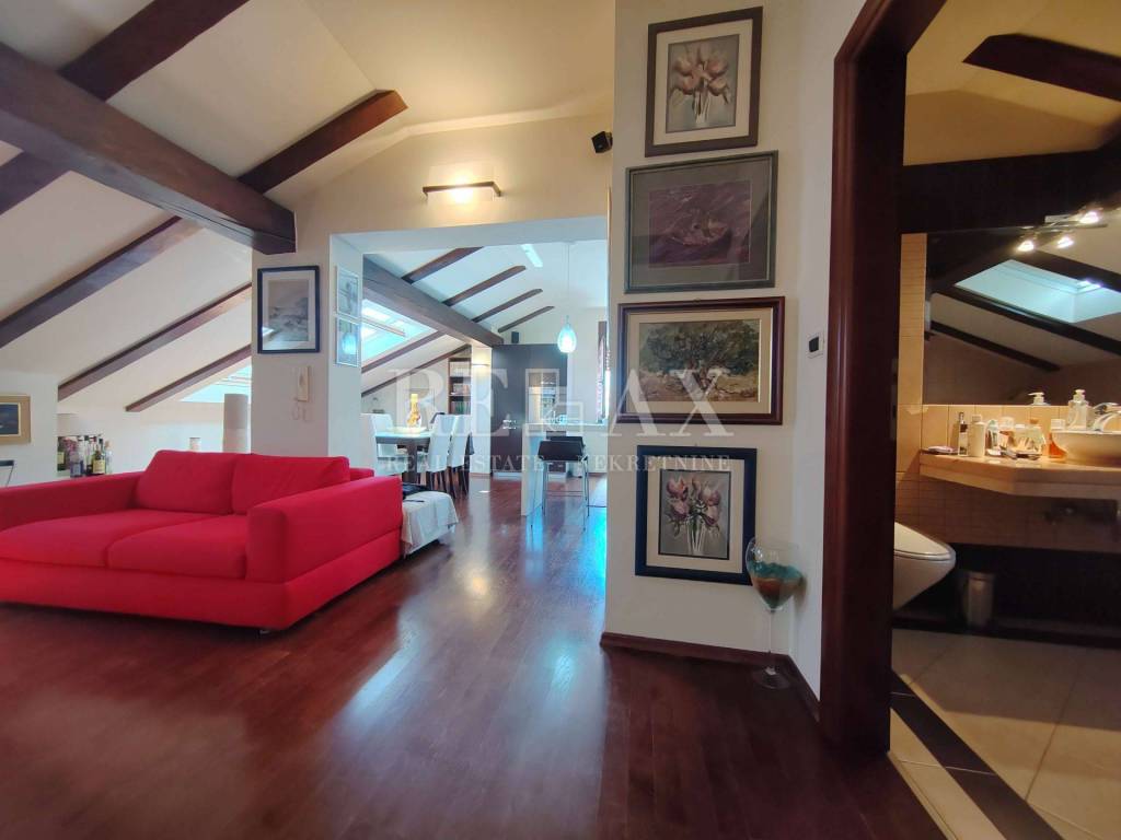 Stan se prodaje potpuno opremljen visokokvalitetnim namještajem renomiranih proizvođača, uključujući stolariju i kuhinju rađenu po mjeri.