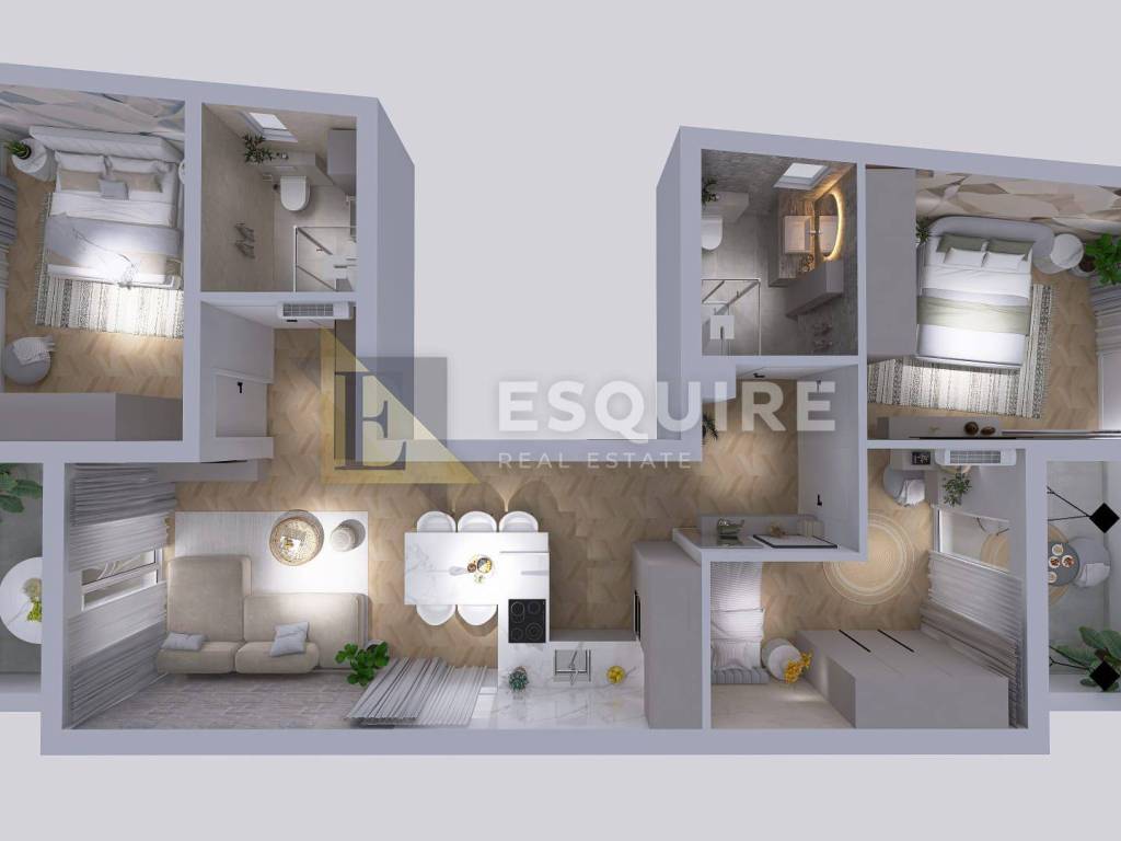 Stan se sastoji od: -open-space dnevnog boravka, kuhinje, blagovaonice -tri spavaće sobe -dvije kupaone -vrta -dva parkirna mjesta