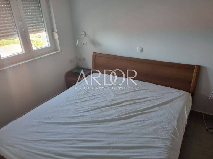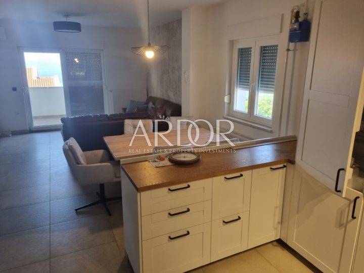 Dodatni sadržaji uključuju dva balkona s prekrasnim pogledom na more i Kvarner te prizemnu terasu. Kao dodatna pogodnost, stan nudi mogućnost korištenja bazena. Objekt je opremljen parkingom i smješten je u blizini javnog prijevoza.