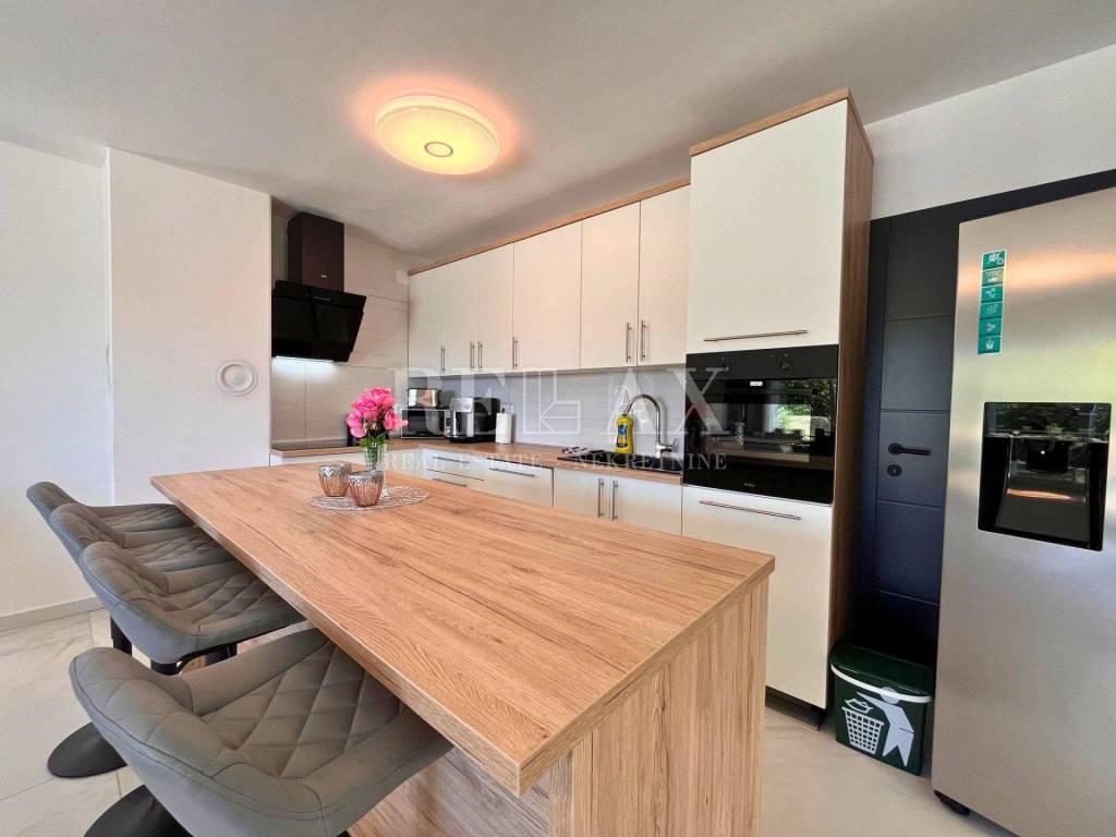 Stan je potpuno opremljen te je opremu i namještaj moguće preuzeti sa stanom. Opremljen je podnim grijanjem na dizalicu topline s vlastitim termostatom u svakoj prostoriji, klima uređajima u svakoj sobi, video parlafonom, video nadzorom i električnim roletnama. Prozori su opremljeni komarnicima. Energetski razred B osigurava niske troškove režija.