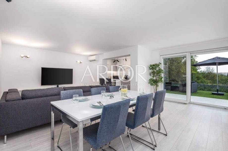 U Marčeljima, u mirnom i zelenom okruženju, iznajmljuje se moderan 2-sobni stan površine 85 m². Smješten je na 1. katu manje zgrade novije gradnje i južno je orijentiran, što mu osigurava puno dnevnog svjetla.