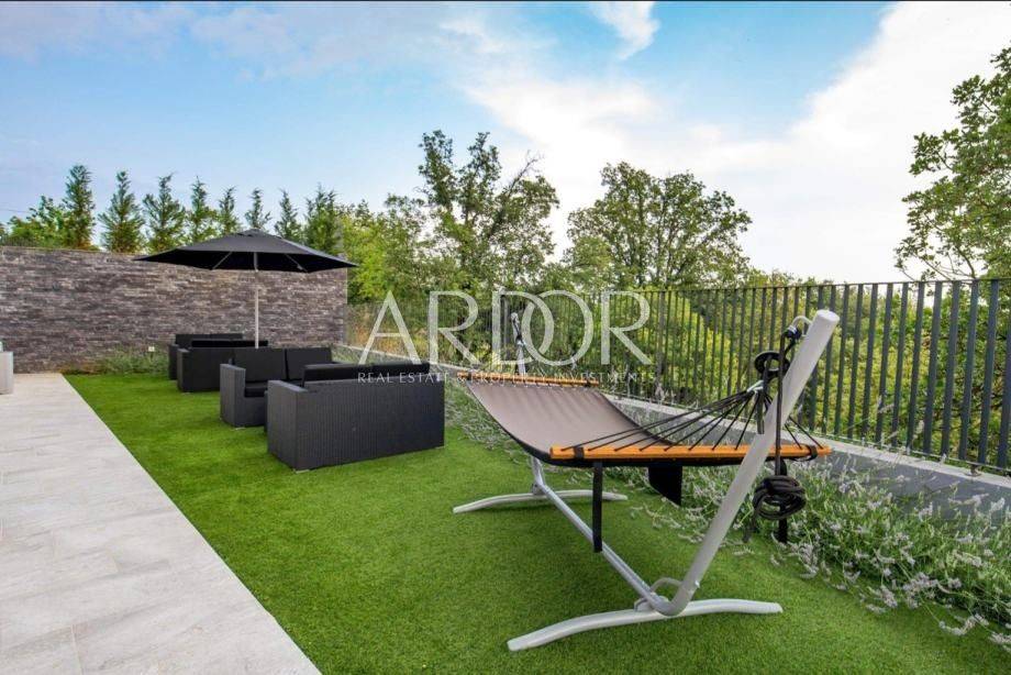 Stan se sastoji od prostranog open space dnevnog boravka s blagovaonicom i kuhinjom, dvije spavaće sobe, kupaonice te balkona s lijepim pogledom. Potpuno je namješten i opremljen, a grijanje i hlađenje riješeno je putem klima uređaja.