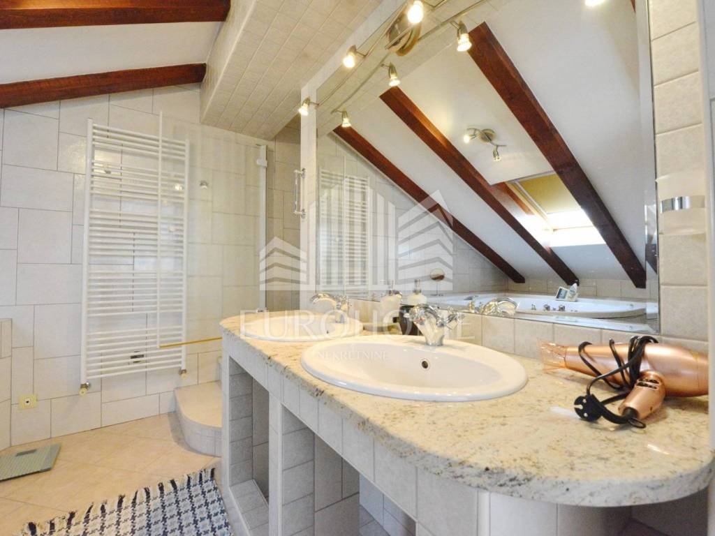OPREMA: Grijanje je etažno centralno na struju a stan ima i dvije klime, po jednu na svakoj etaži . Podovi su od hrastovog parketa 20mm a u kupaonama i kuhinji su keramičke pločice. Prozori imaju PVC vanjsku stolariju. Zgrada je opremljena liftom.